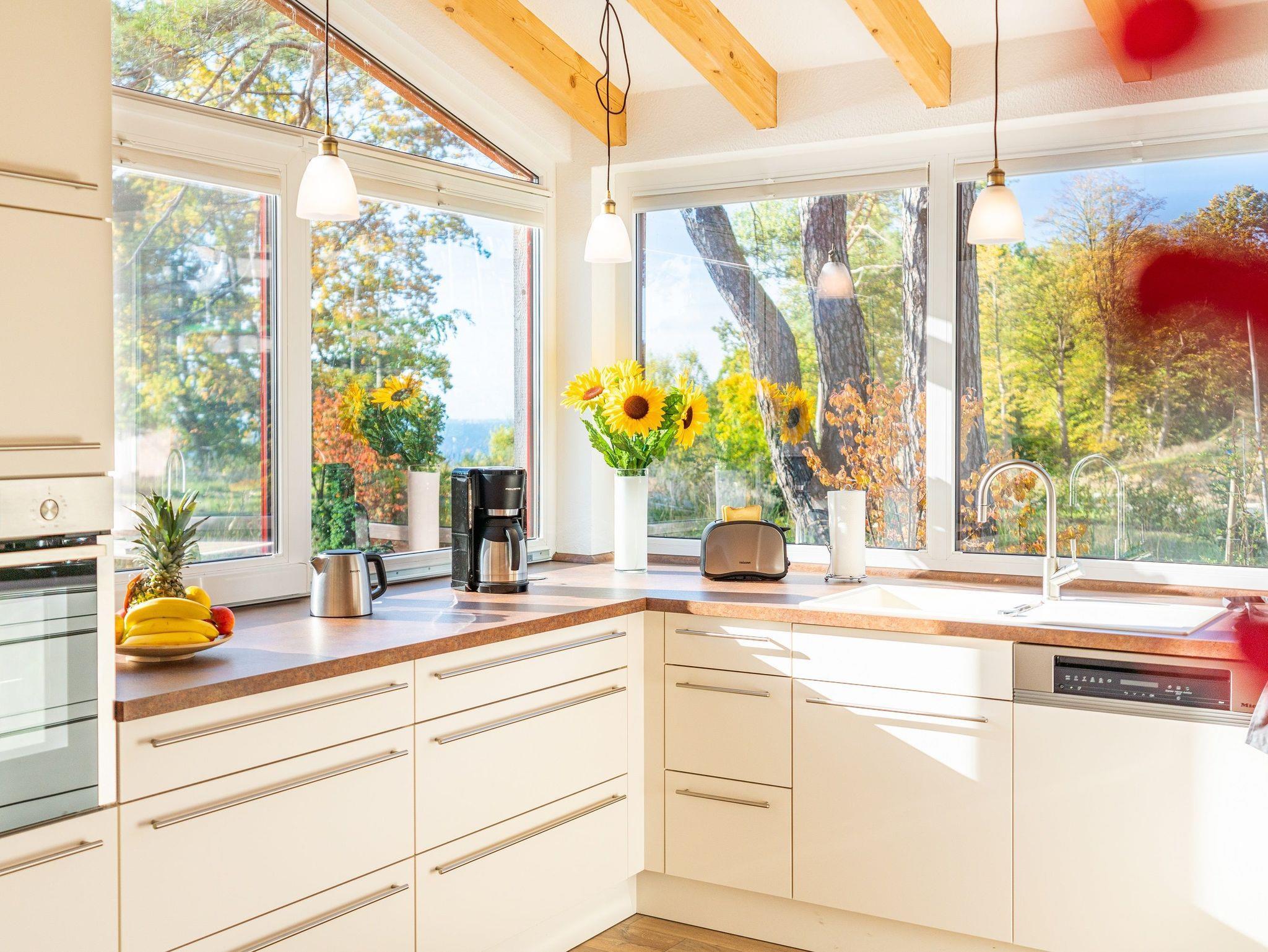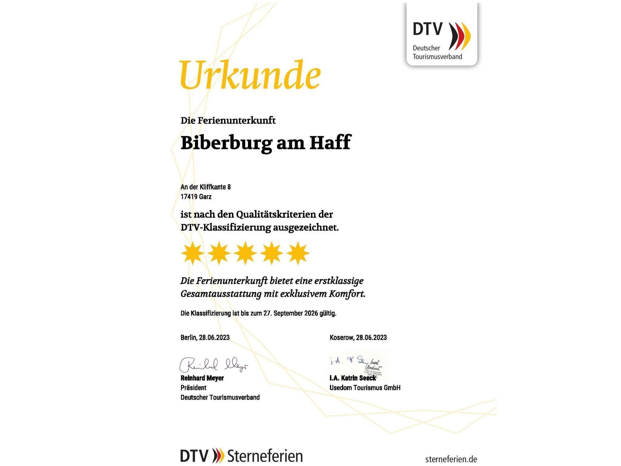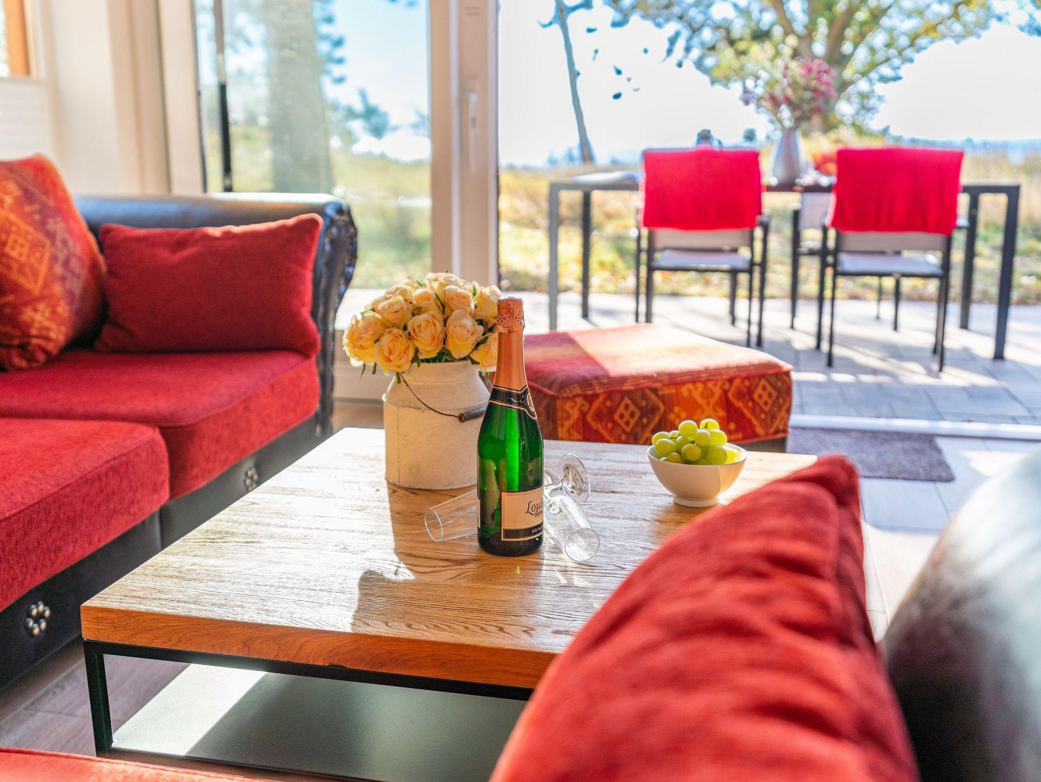 Erleben Sie Natur pur im 5-Sterne-Ferienhaus Biberburg mit Panoramablick auf das Haff und moderner Ausstattung.