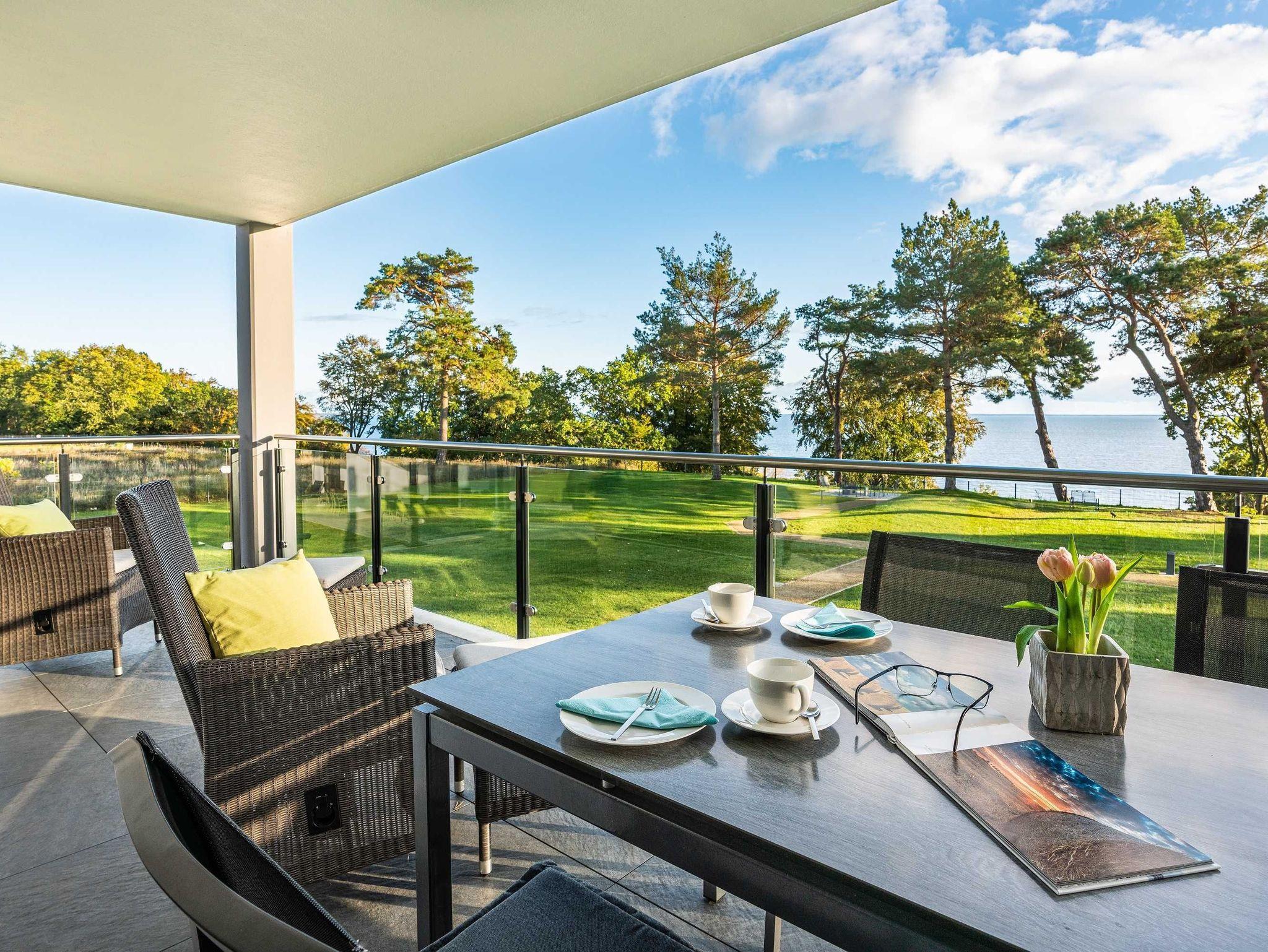 Alle Terrassenwohnungen und Appartements sind in hochwertiger Ausstattung eingerichtet. Von großen Rasenflächen und ebenen Gehwegen umgeben, stehen unsere sieben Ferienhäuser auf die Haffküste ausgerichtet auf einer weitflächigen Außenanlage zueinander. Unsere Haffterrassen laden mit Sitzgelegenheiten an der Steilküste zum Entspannen ein.