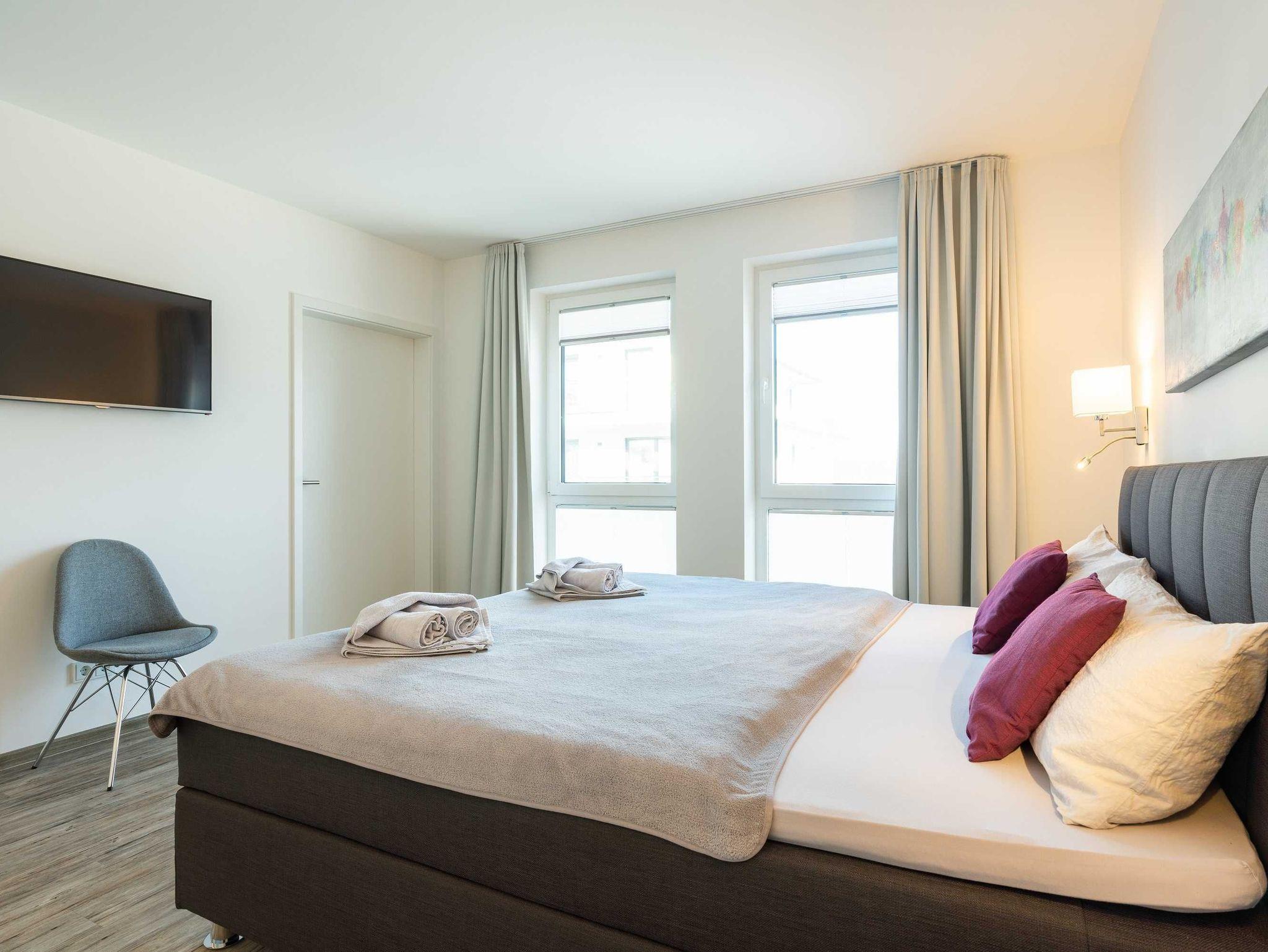 Für Ihren Aufenthalt stellen wir Ihnen Bettwäsche und Handtücher zur Verfügung. Ansprechpartnerinnen und Ansprechpartner sind vor Ort stets erreichbar.