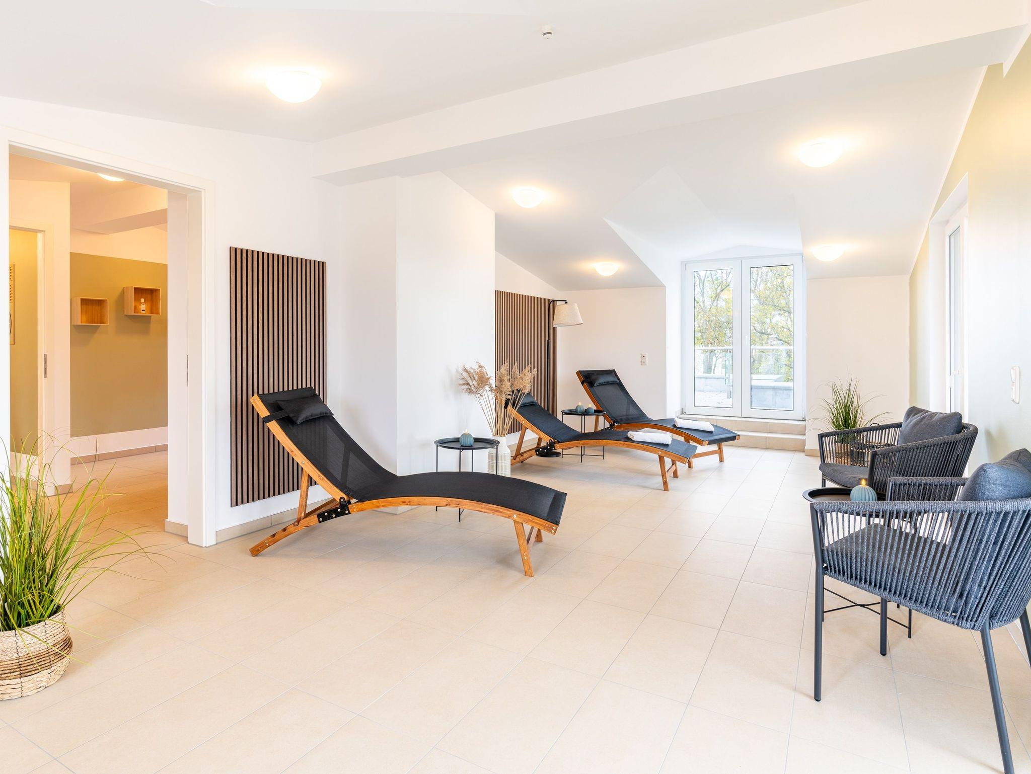 Weit ab von der Hektik und den Besuchermassen öffentlicher Wellnessangebote, finden Sie im Dachgeschoss des Hauses auf 190 m² die Ruhe, die Sie sich verdient haben. Entspannen Sie im hauseigenen, kostenfreien Wellnessbereich mit drei Saunen. Genießen Sie die klare Ostseeluft auf der großen angrenzenden Dachterrasse.