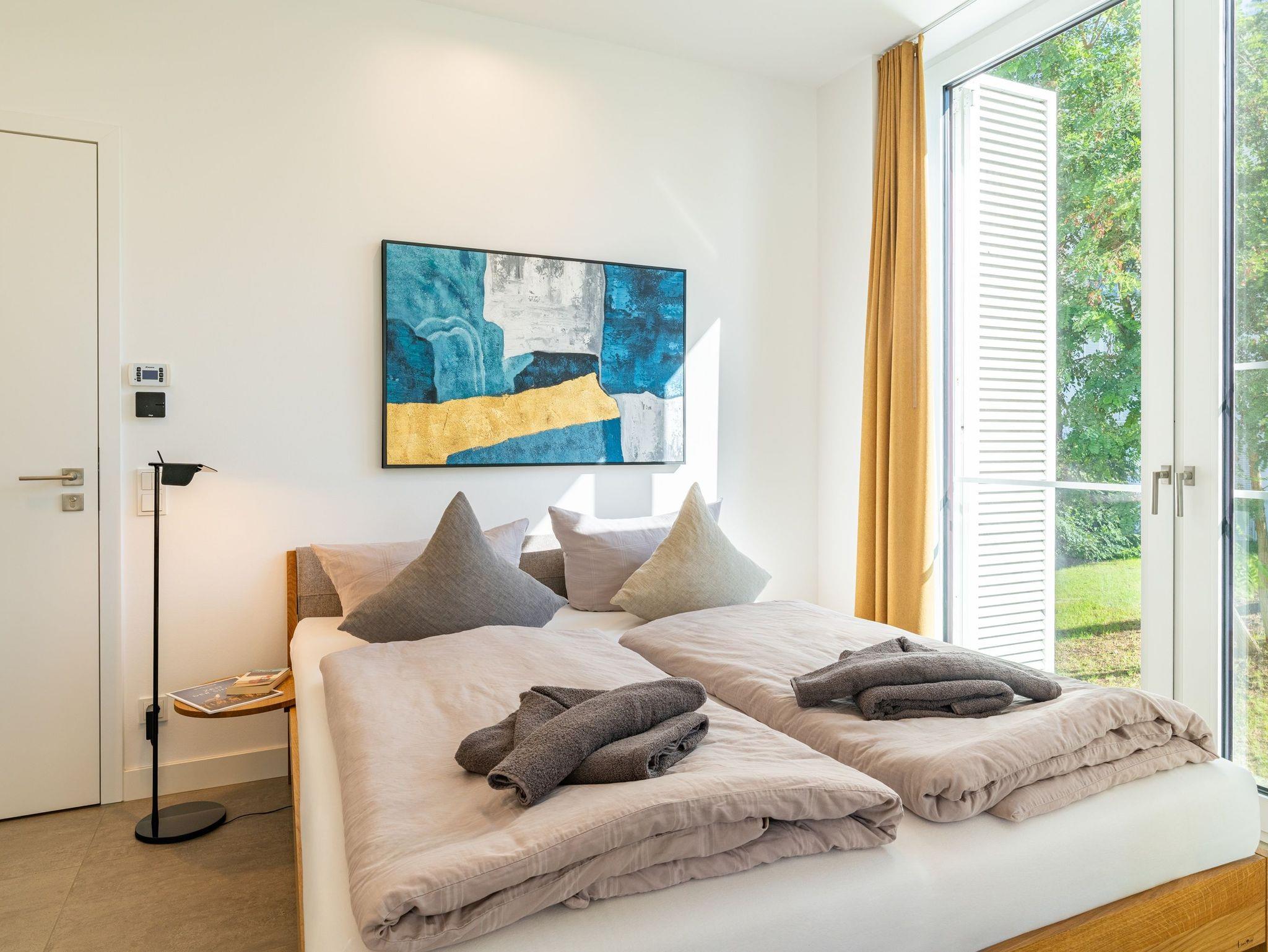 Im Schlafzimmer erwartet Sie ein komfortables französisches Doppelbett (160 x 200 cm). Beide Badezimmer verfügen über ebenerdige Duschen und bieten so höchsten Komfort. Auf der sonnigen Südterrasse steht Ihnen zusätzlich eine private Sauna zur Verfügung - ideal für entspannte Stunden.