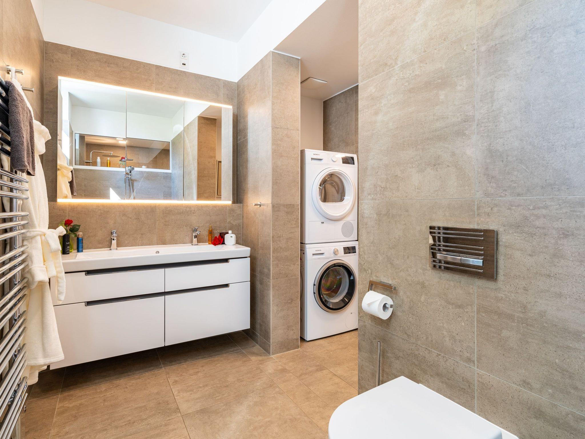Handtücher und Bettwäsche sind im Preis inbegriffen. Für Ihren Komfort stehen Ihnen eine Waschmaschine und ein Trockner kostenfrei zur Verfügung. Für Ihren Saunabesuch liegt ein Set mit kuscheligem Bademantel und Saunahandtuch bereit.