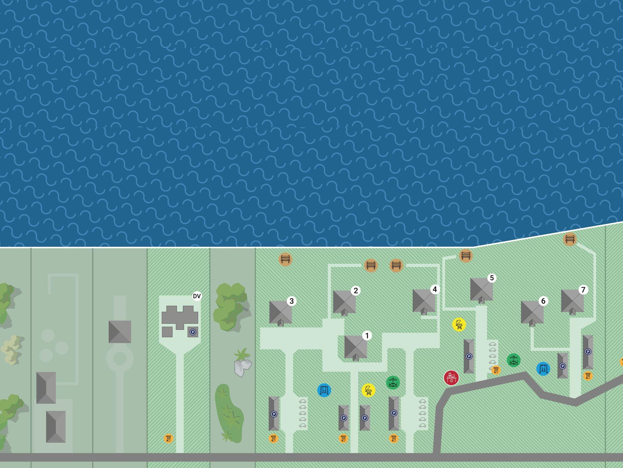 Alle Terrassenwohnungen und Apartments sind hochwertig und modern ausgestattet. Eine weitläufige Außenanlage mit einer gepflegten Rasenfläche und Gehweg zur traumhaften Haff-Terrasse umgeben unser 2024 fertiggestelltes Ferienhaus, das im Gegensatz zu allen anderen Oase am Haff-Häusern auf einem separaten Grundstück, ca. 400 Meter östlich der weiteren Gebäude, liegt. Die gemeinschaftlich nutzbare Haff-Terrasse lädt mit Sitzgelegenheiten an der Steilküste zum Verweilen ein.