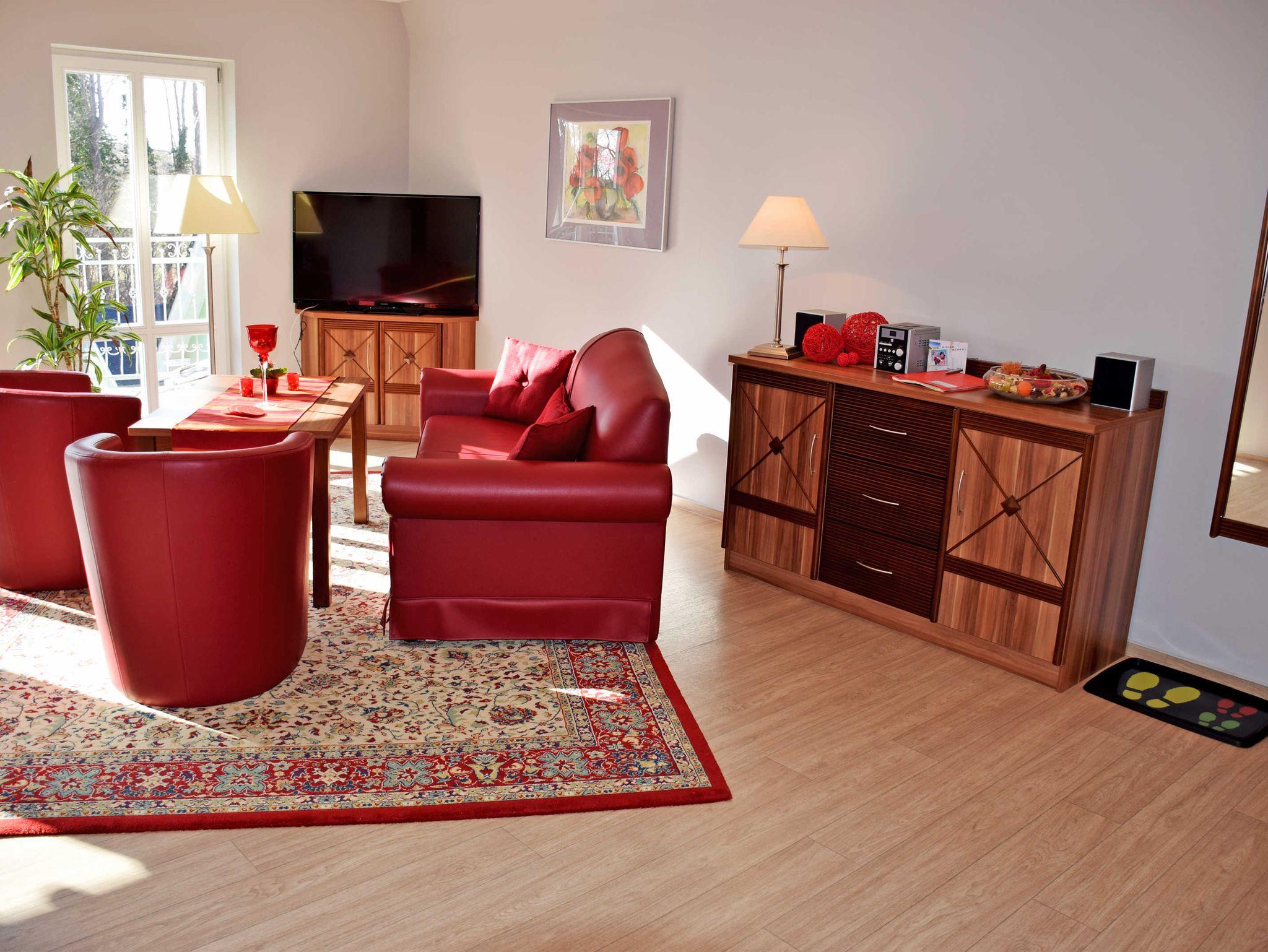 Erleben Sie Komfort und Entspannung im Gutshaus-Appartement mit Kamin, Sauna und Außenpool auf Rügen.