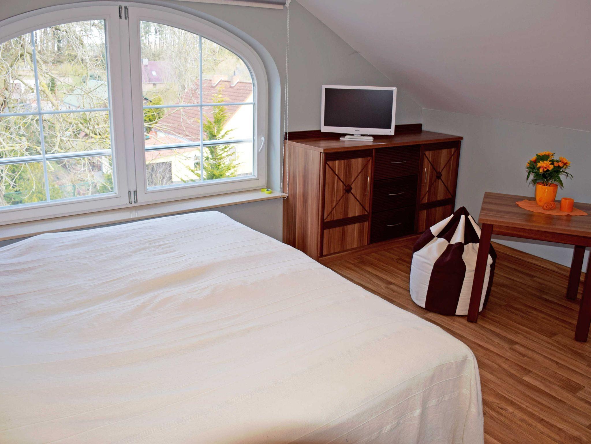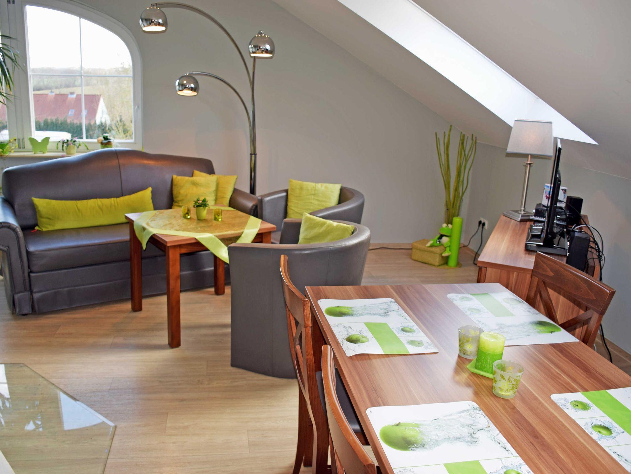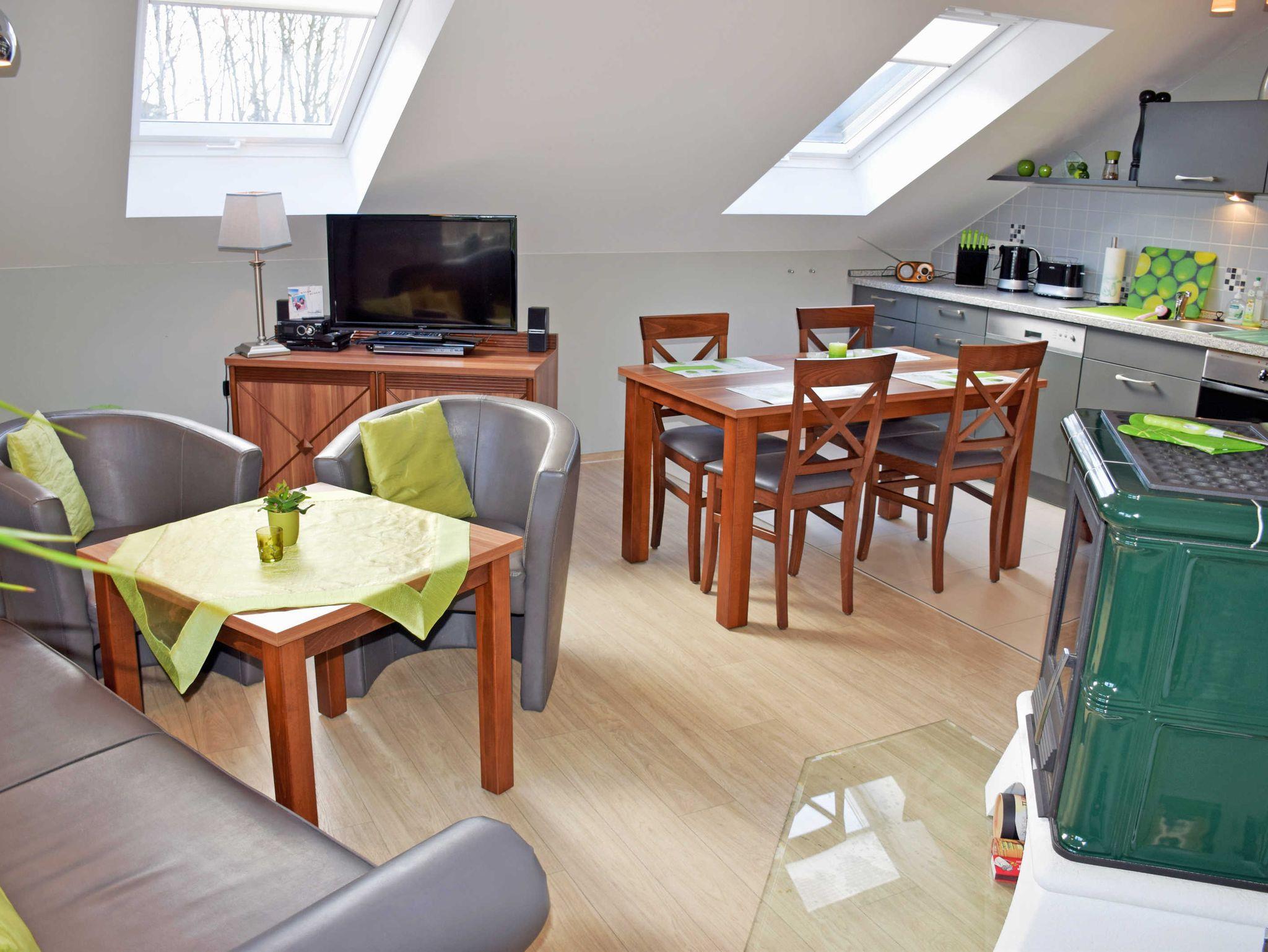 Unser ruhig gelegenes Ferienappartement II (75 qm, 4 Erwachsene und ein Kind bis 3 Jahre.) befindet sich im Dachgeschoß direkt im Gutshaus. Es verfügt über eine angenehme Fußbodenheizung. Die gemütliche und zugleich komfortable Einrichtung in diesem Appartement machen auch einen längeren Aufenthalt zu einem angenehmen Erlebnis. Der Internetzugang über W-Lan ist im Appartement verfügbar.