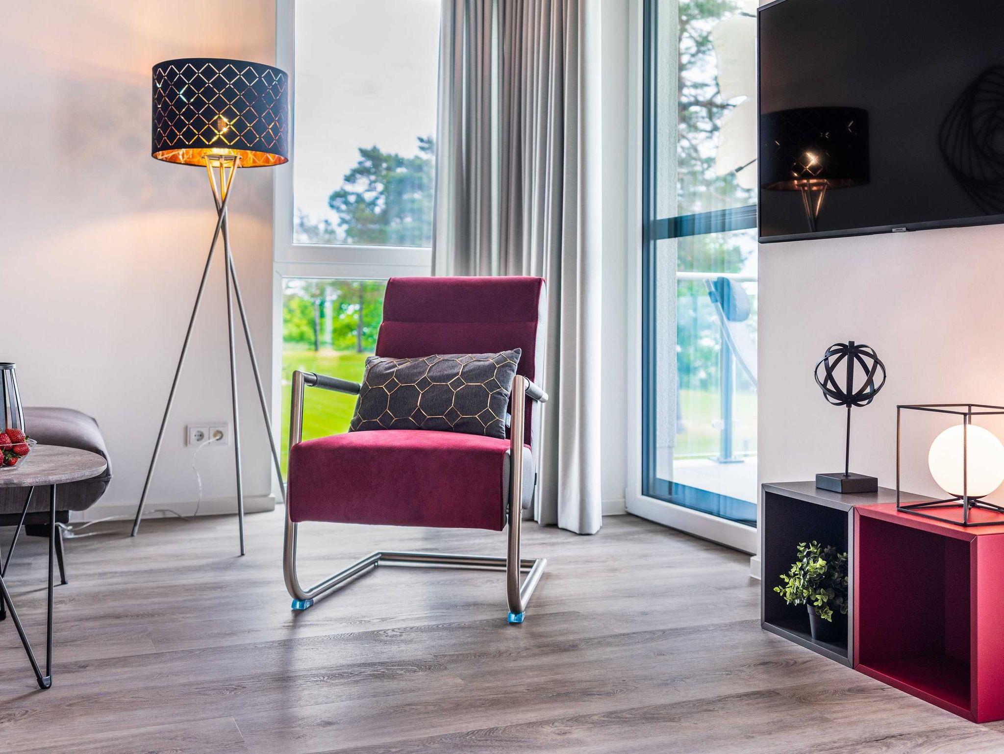 Alle Terrassenwohnungen und Appartements sind mit viel Liebe zum Detail in hochwertiger Luxus-Ausstattung eingerichtet. Von großen Rasenflächen und ebenen Gehwegen umgeben, stehen unsere Ferienhäuser auf die Haffküste ausgerichtet und auf einer weitflächigen Außenanlage zueinander. Unsere Haffterrassen laden mit Sitzgelegenheiten an der Steilküste zum Entspannen bei einem Glas Wein ein.
