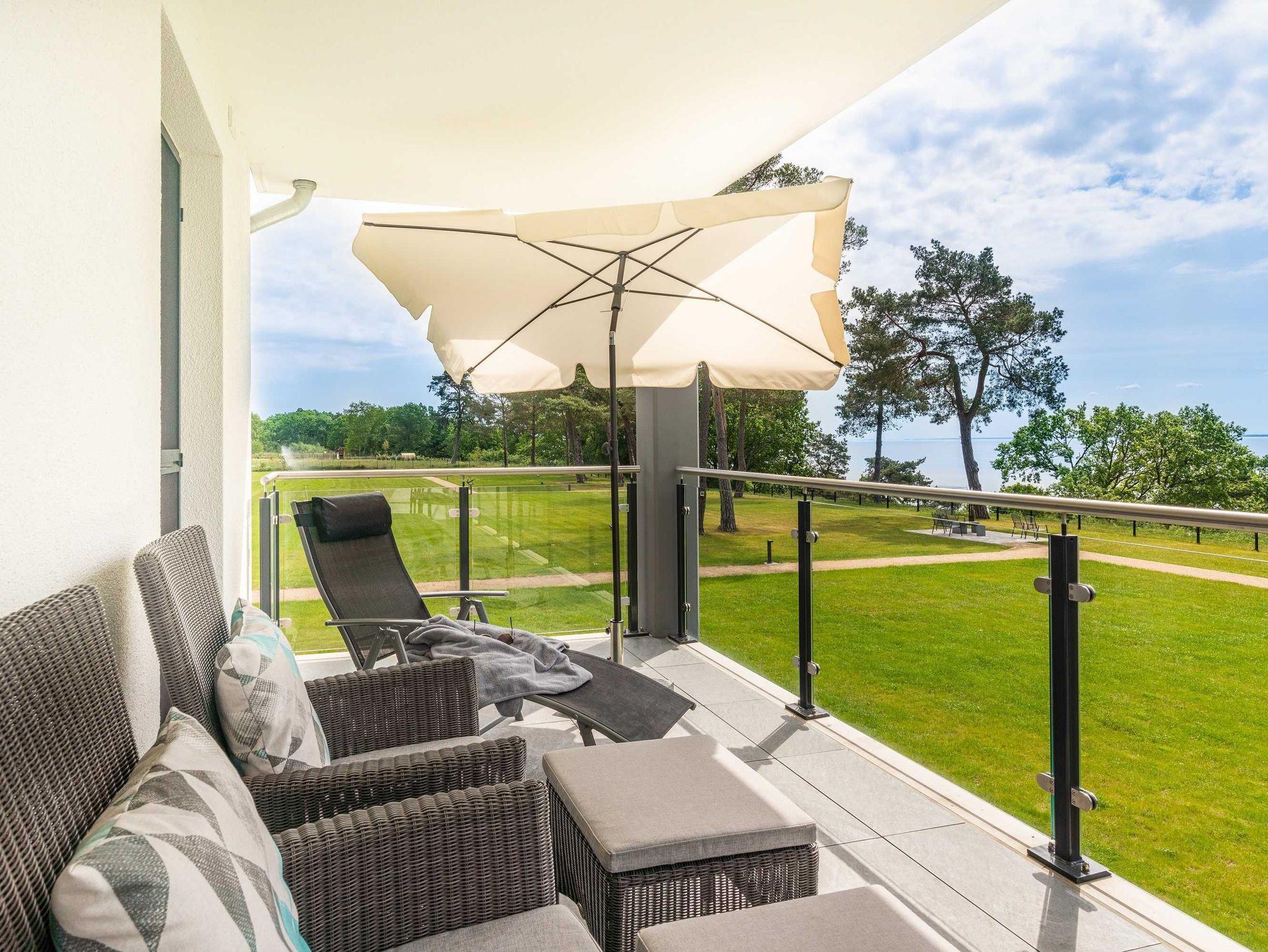 Luxuriöses Apartment Mohnblume auf Usedom mit Sonnenterrasse und traumhaftem Blick auf das Stettiner Haff.