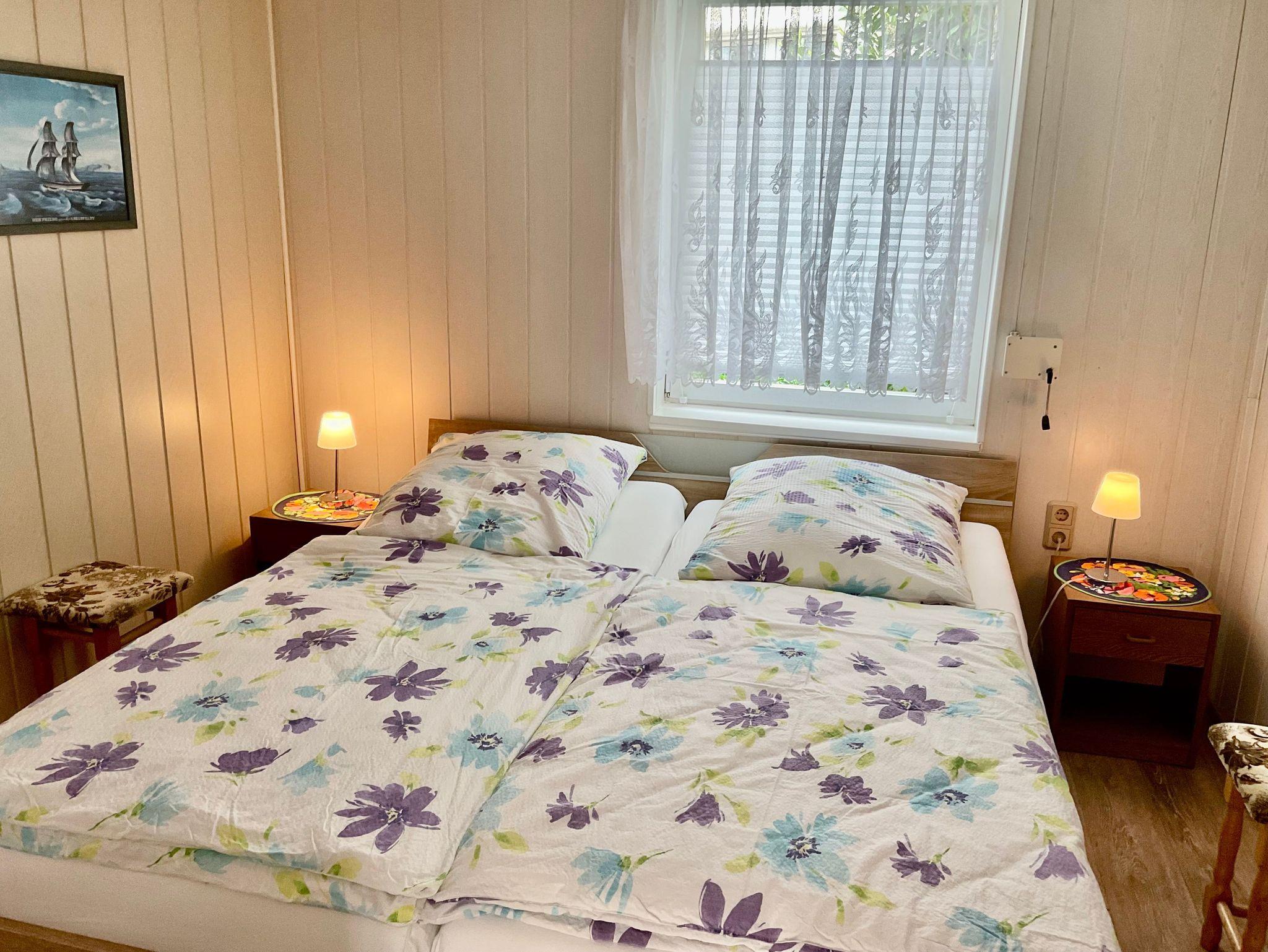Die gemütlich eingerichtete Ferienwohnung befindet sich in einem Bungalow und verfügt über ein Wohnzimmer mit Sitzgruppe, zwei hintereinander liegenden Schlafzimmern mit jeweils Doppelbetten und dem Duschbad das hinter dem zweiten Schlafzimmer liegt. Die modern eingerichtete Küche mit der Sitzecke lässt keine Wünsche offen.