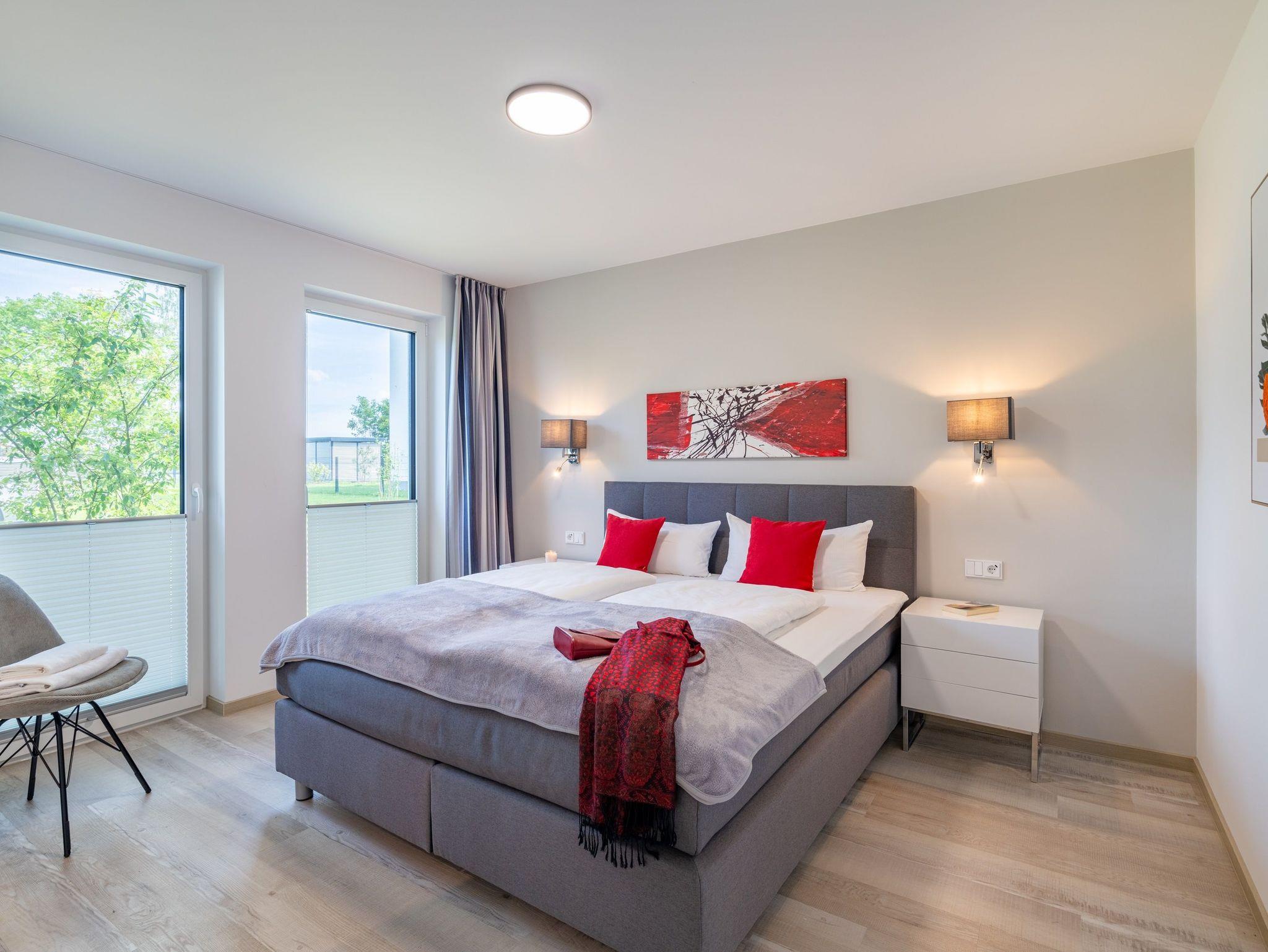 Erleben Sie eine verdiente Auszeit in der Terrassenwohnung „See-T-Raum 1“. Diese stilvolle Ferienwohnung im Haus 8, das im Juli 2024 neu eröffnet wurde, verspricht friedliche Stille und einen spektakulären Ausblick. Genießen Sie die Ruhe dieses idyllischen Rückzugsorts und entspannen Sie sich in vollen Zügen.