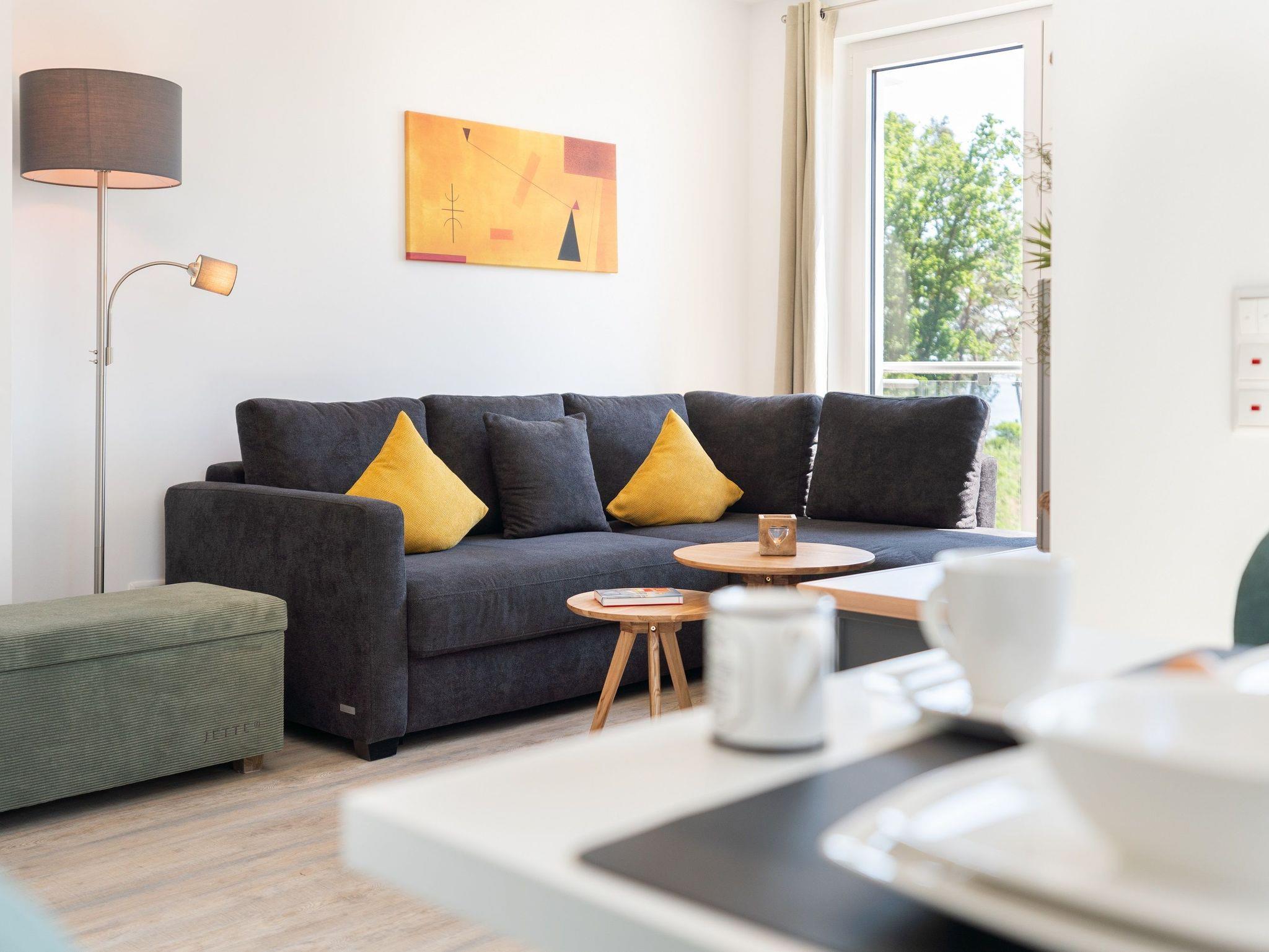 Auf einer Wohnfläche von 61 m² finden drei Erwachsene und ein Kleinkind bis zwei Jahre (im Babybett) in dieser modern eingerichteten Ferienwohnung ausreichend Platz für einen entspannten Urlaub am Stettiner Haff auf Usedom.