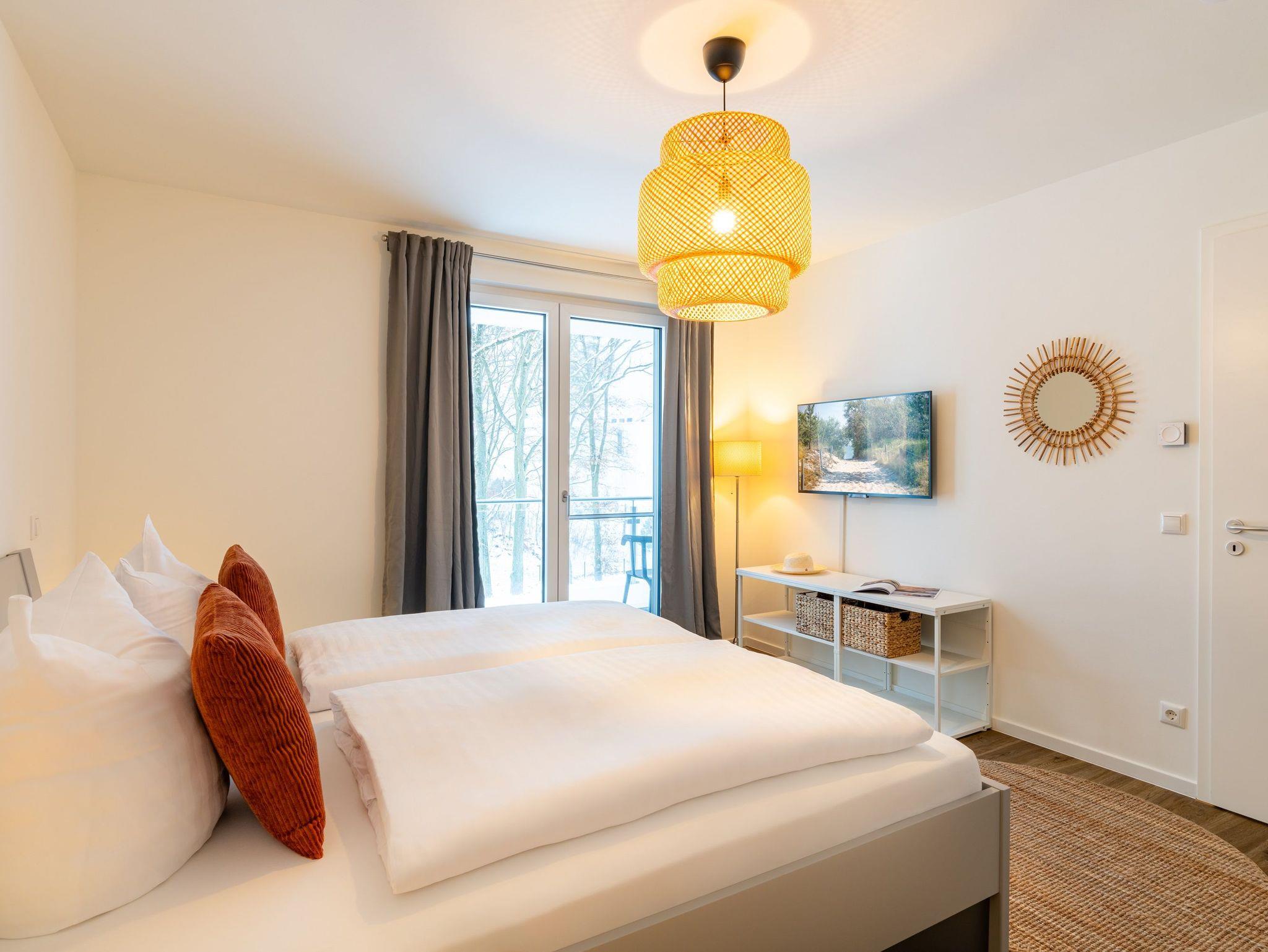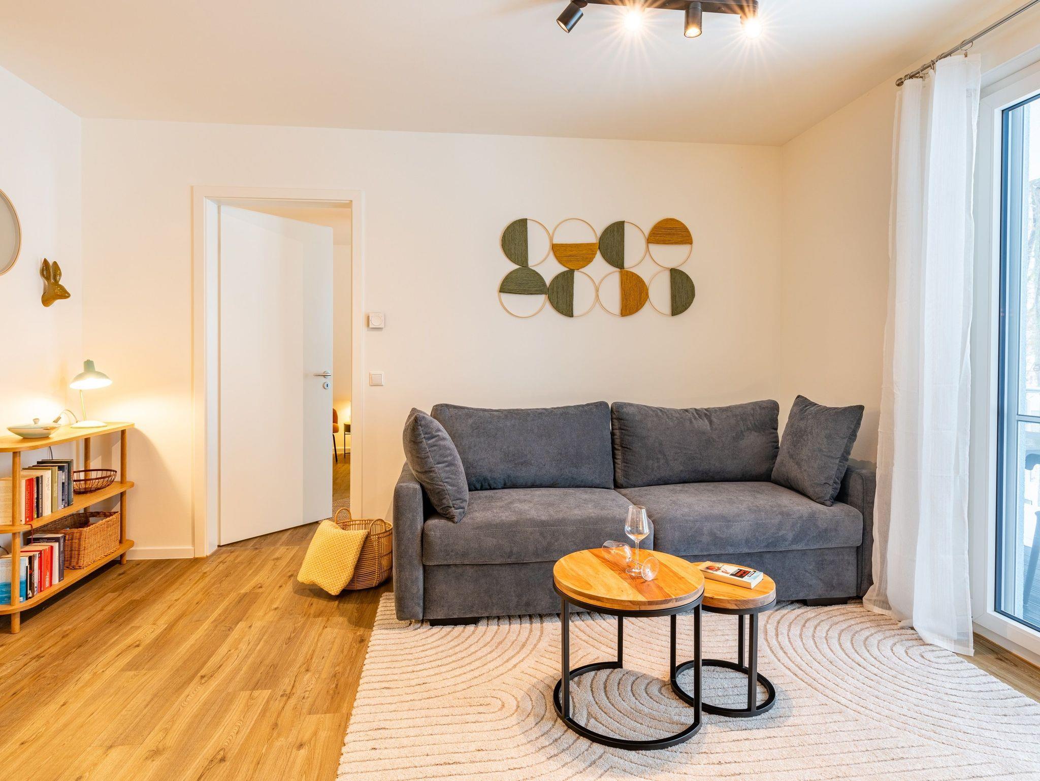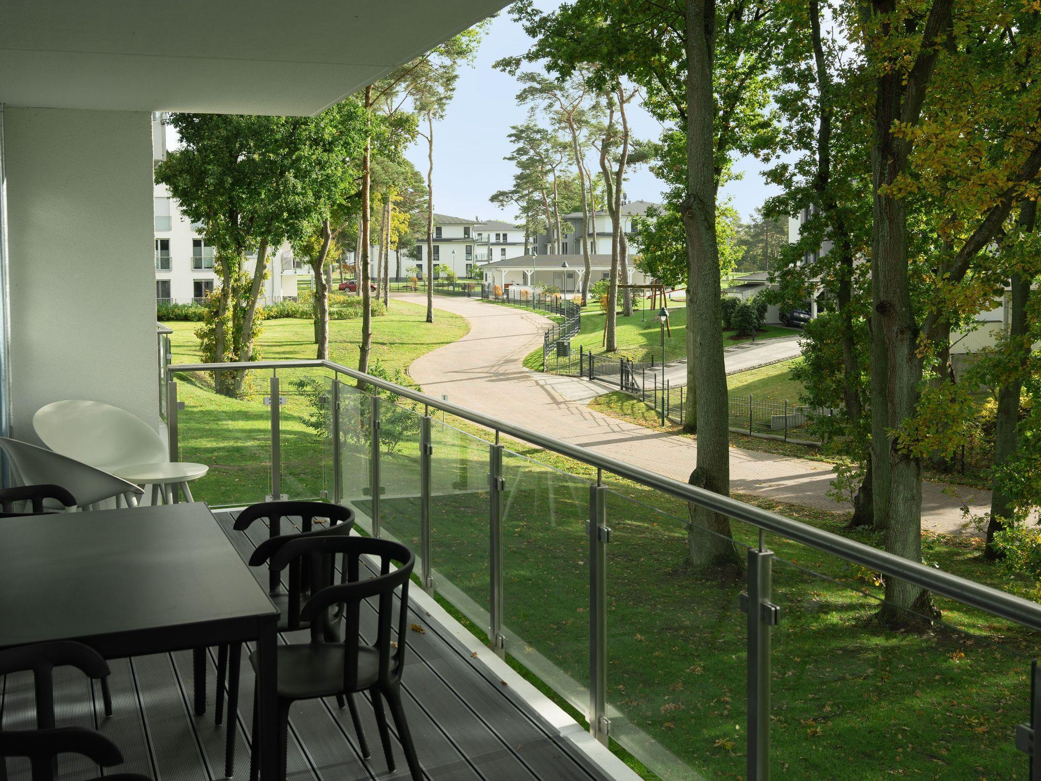 Modernes Apartment Haff Ahoi auf Usedom mit Sauna, Balkon und barrierefreiem Zugang nahe Naturpark Stettiner Haff.