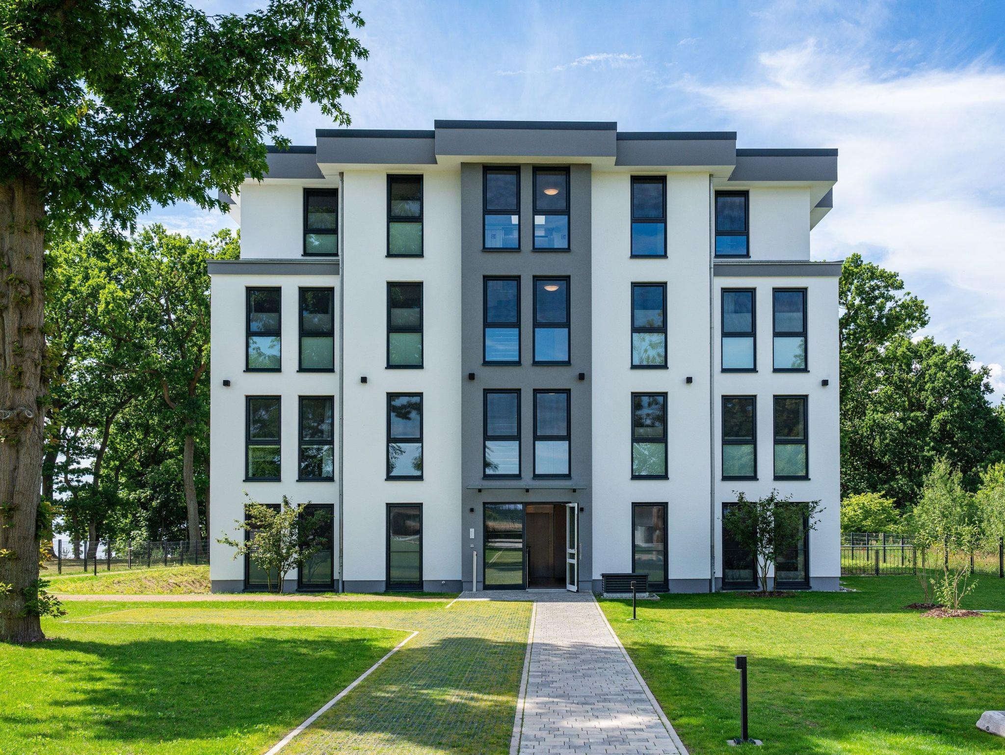 Alle Terrassenwohnungen und Apartments sind hochwertig und modern ausgestattet. Eine weitläufige Außenanlage mit einer gepflegten Rasenfläche und Gehweg zur traumhaften Haff-Terrasse umgeben unser 2024 fertiggestelltes Ferienhaus, das im Gegensatz zu allen anderen Oase am Haff-Häusern auf einem separaten Grundstück, ca. 400 Meter östlich der weiteren Gebäude, liegt. Die gemeinschaftlich nutzbare Haff-Terrasse lädt mit Sitzgelegenheiten an der Steilküste zum Verweilen ein.