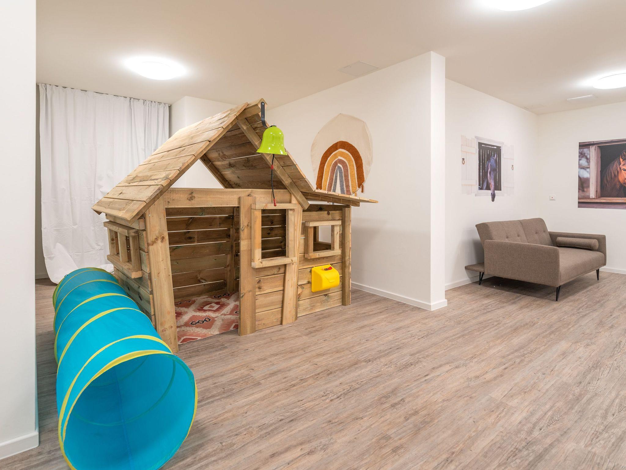 Im Untergeschoss erwartet Sie ein Gemeinschaftsbereich mit Tischtennis, Kicker, Billard sowie einer Spielecke für Kinder ? all das kostenfrei nutzbar.