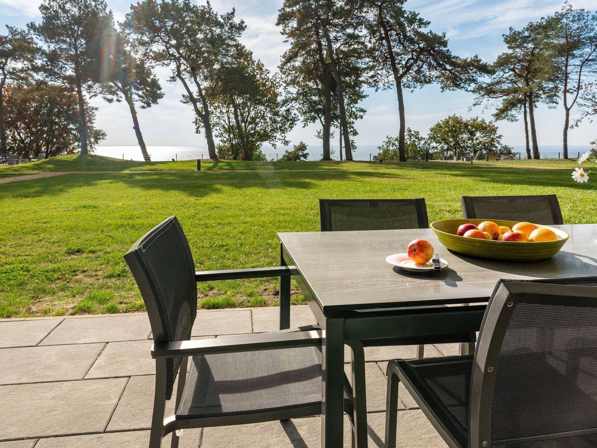 Alle Terrassenwohnungen und Appartements sind in hochwertiger Ausstattung eingerichtet. Von großen Rasenflächen und ebenen Gehwegen umgeben, stehen unsere sieben Ferienhäuser auf die Haffküste ausgerichtet auf einer weitflächigen Außenanlage zueinander. Unsere Haffterrassen laden mit Sitzgelegenheiten an der Steilküste zum Entspannen ein.