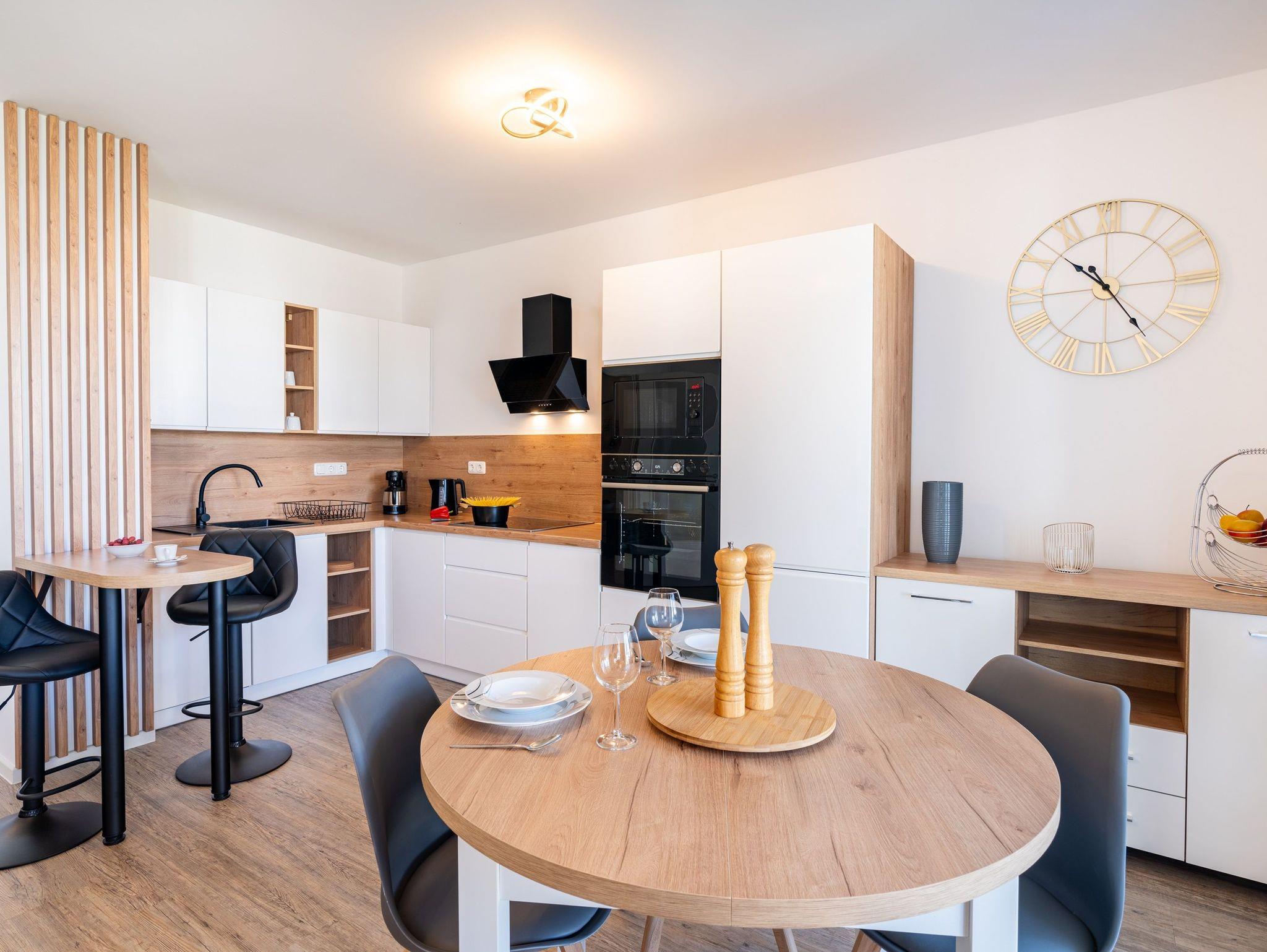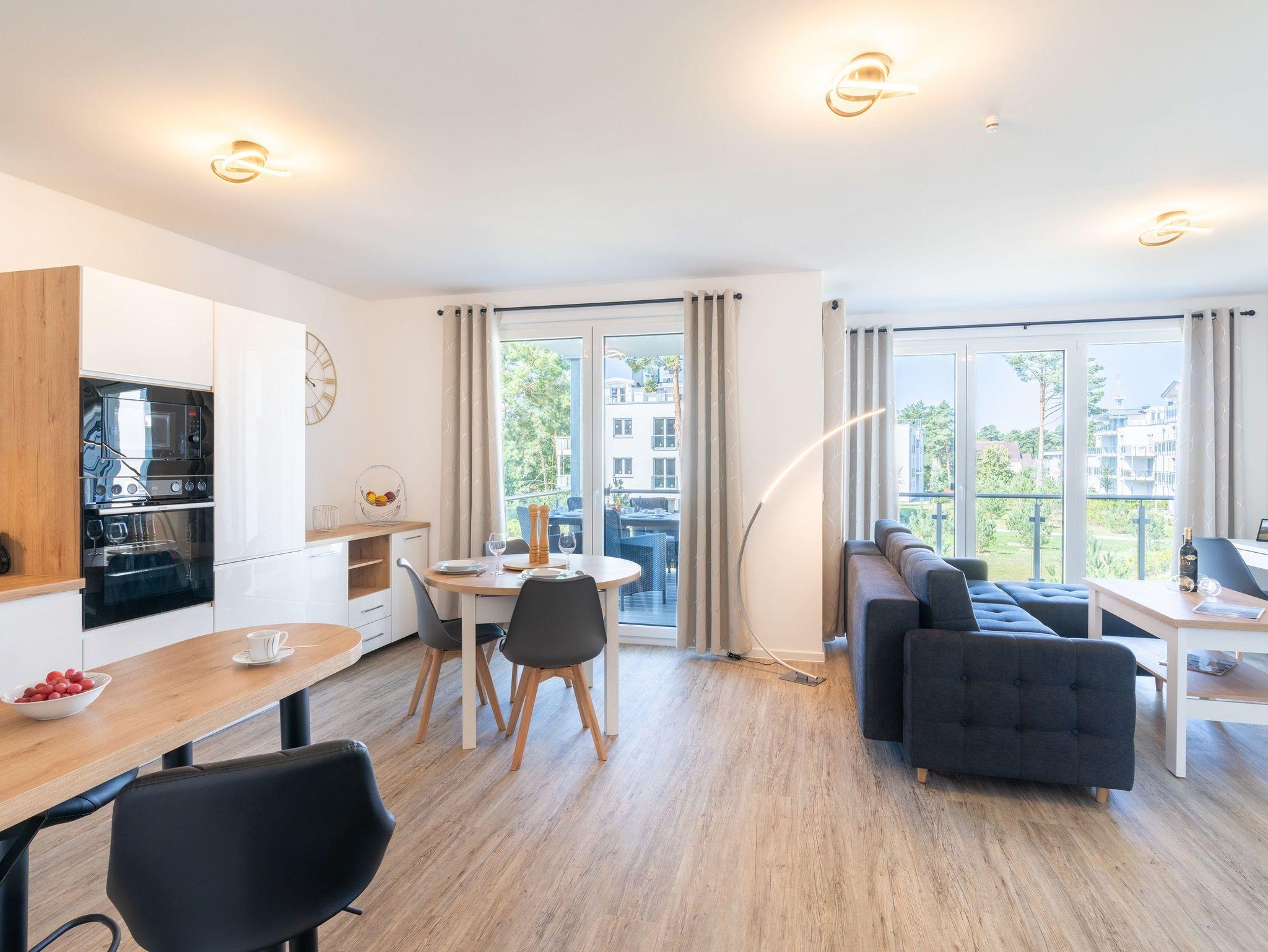 Modernes Apartment Heimathafen in ruhiger Lage nahe Naturpark Stettiner Haff auf Usedom mit Balkon und Wellnessbereich.