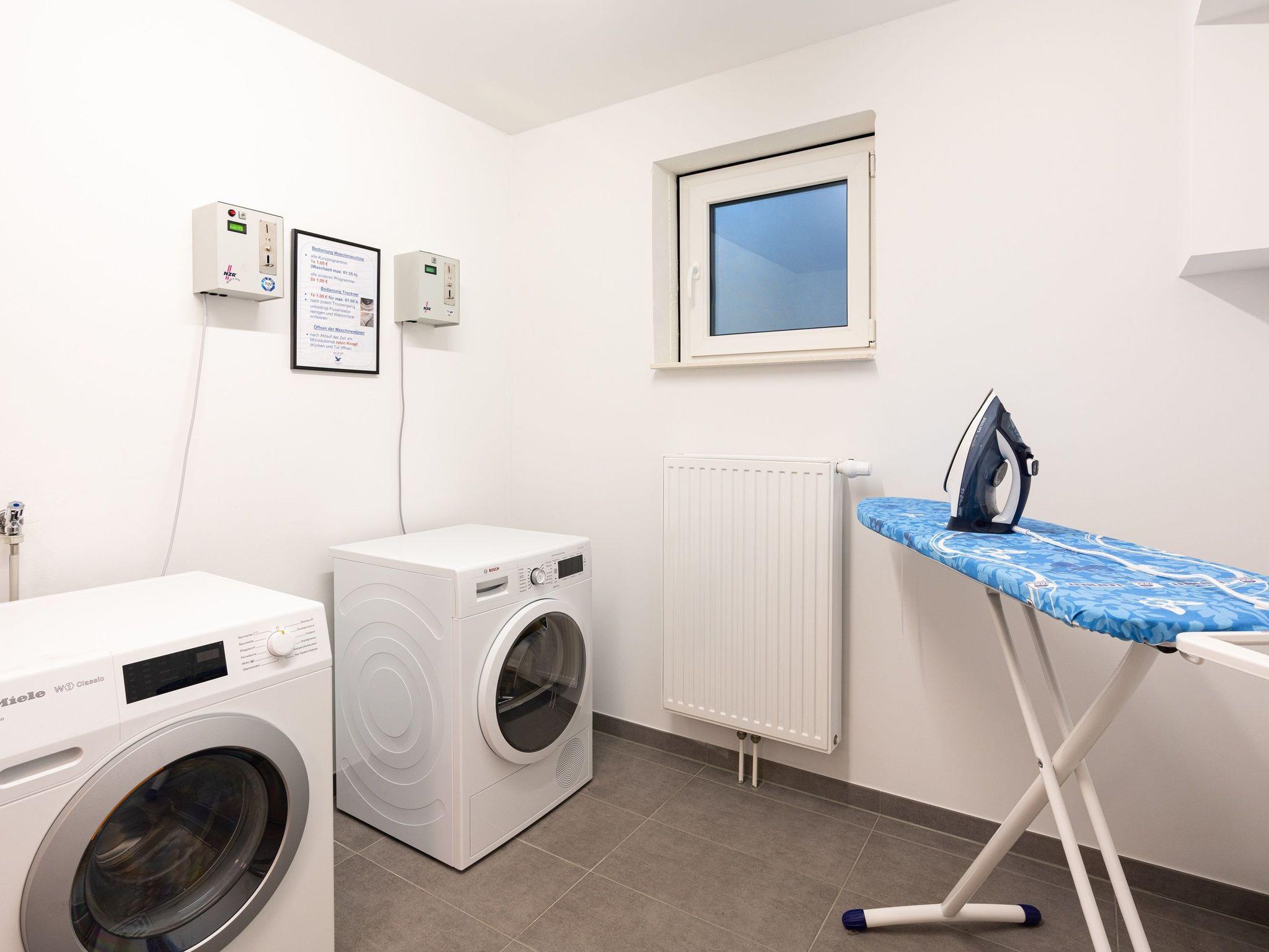 Das WLAN-Netz nutzen Sie kostenfrei. Auf Wunsch stellen wir Ihnen einen Hochstuhl und ein Babyreisebett gegen Gebühr zur Verfügung. Im Souterrain des Hauses können Sie die Waschmaschine und den Trockner gegen Gebühr nutzen. Ihre Fahrräder stellen Sie sicher im abschließbaren Fahrradraum unter (Steckdose für E-Bikes vorhanden).