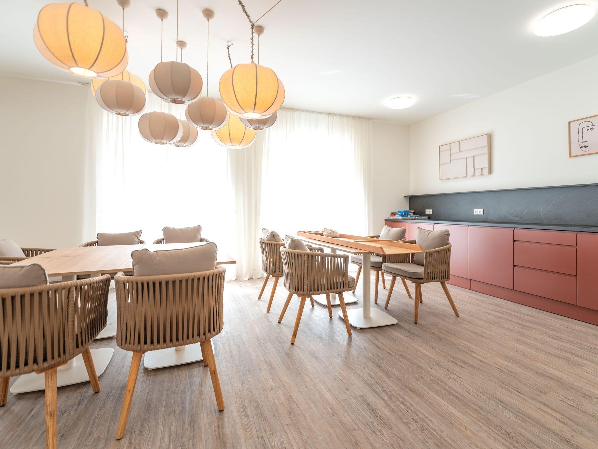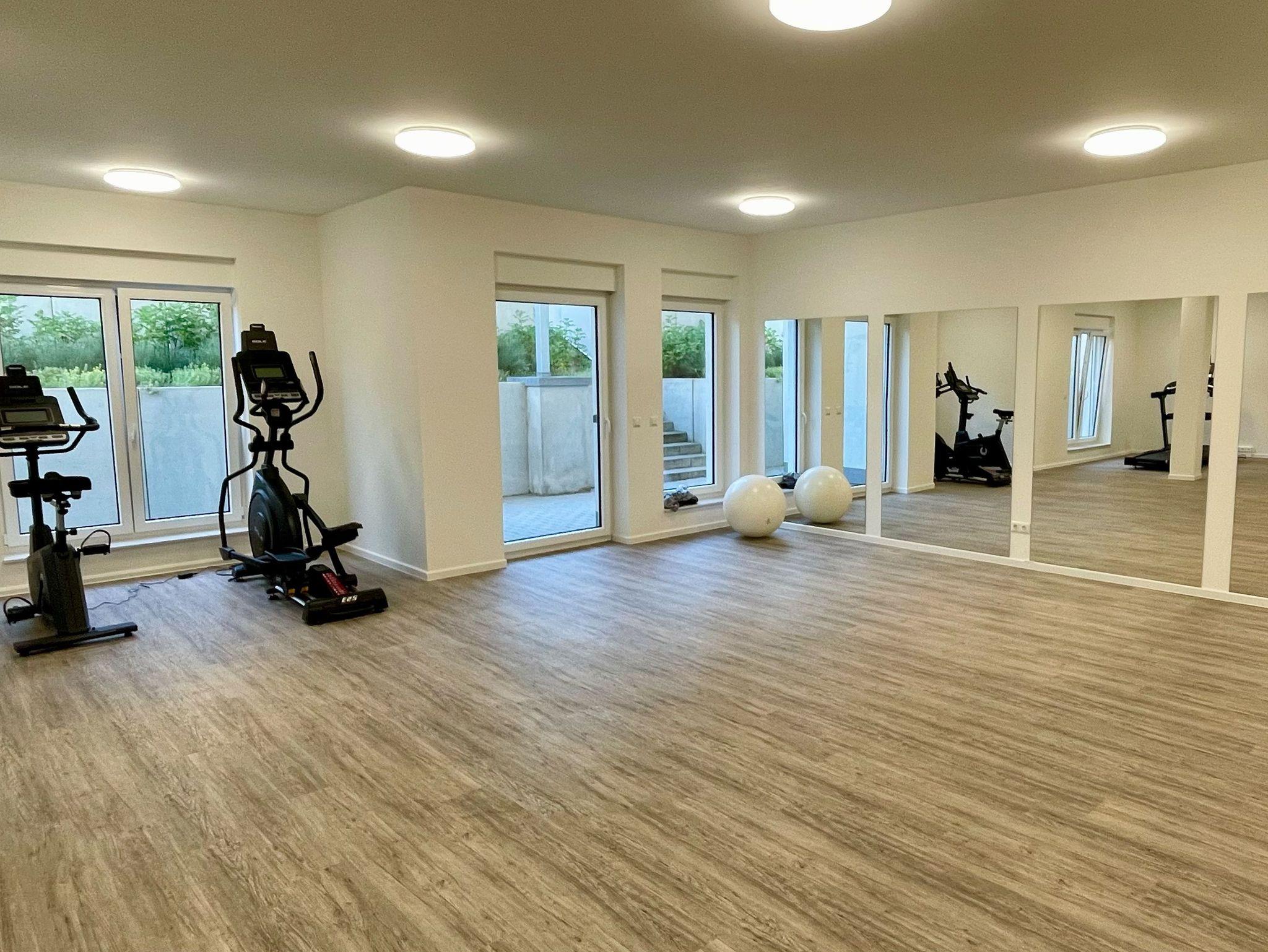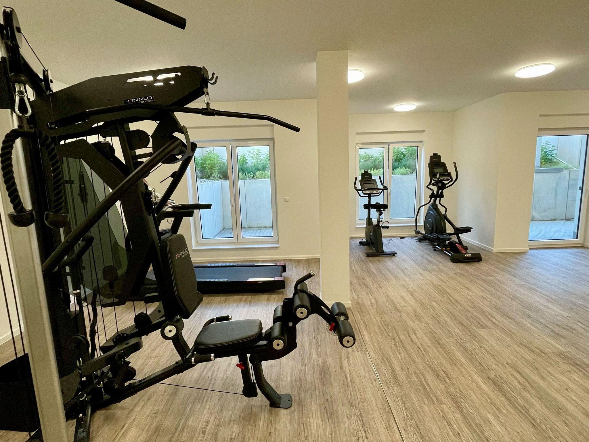 Im Dachgeschoss erwartet Sie der hauseigene Wellnessbereich mit zwei Saunen, einem stilvollen Ruheraum und einer Dachterrasse mit herrlichem Ausblick. Ein großzügiger Fitnessraum mit Kardio- und Kraftgeräten sowie Freihanteln steht ebenfalls im Untergeschoss zur Verfügung. Für wetterunabhängige Unterhaltung für Groß und Klein sorgt der sehr große Gemeinschaftsbereich im Keller mit Billard, Kicker, Tischtennis und einer Kinderspielraum alles kostenfrei nutzbar.