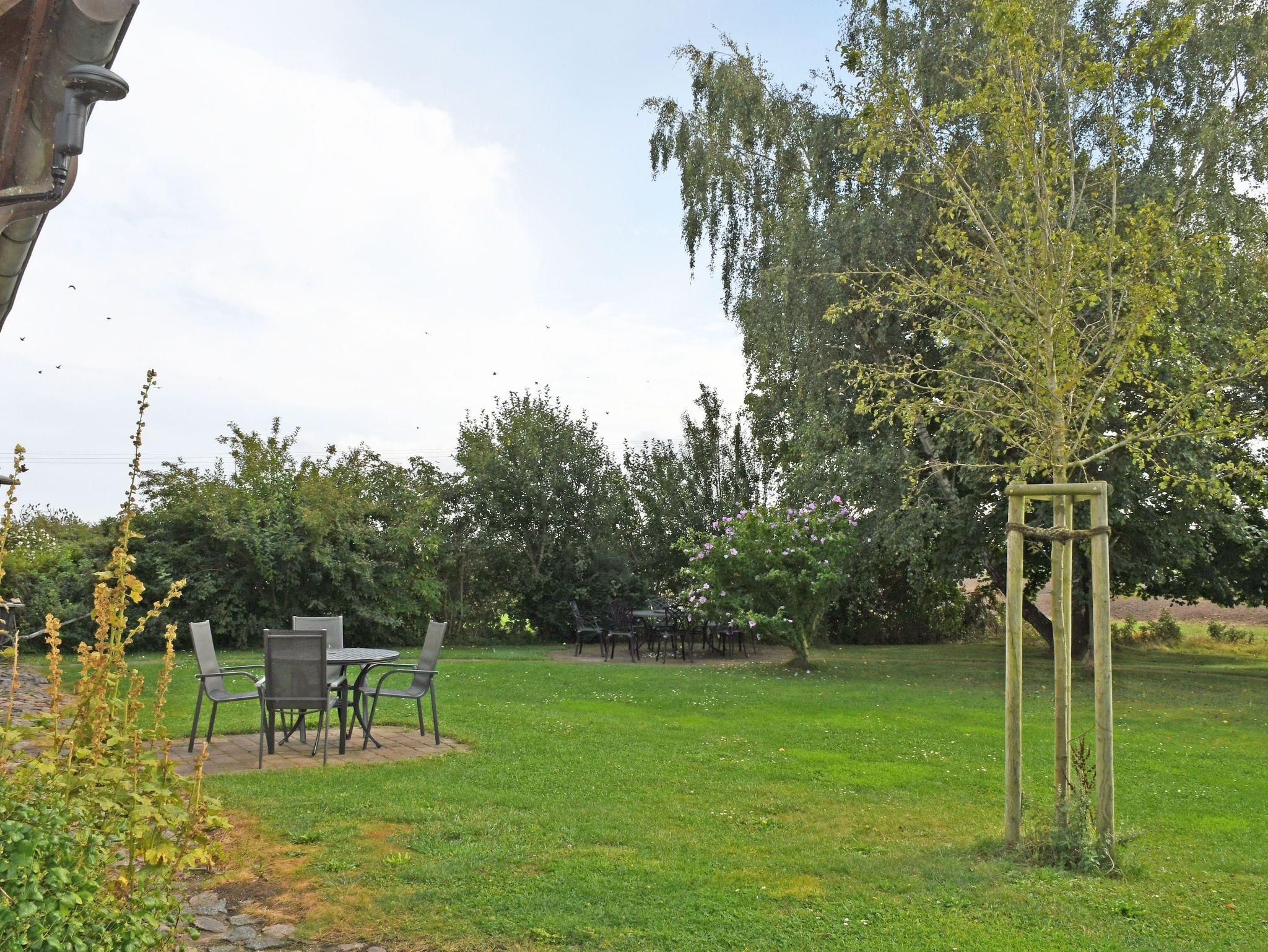 Im Garten können verschiedene Terrassen und Grillmöglichkeiten mit genutzt werden.