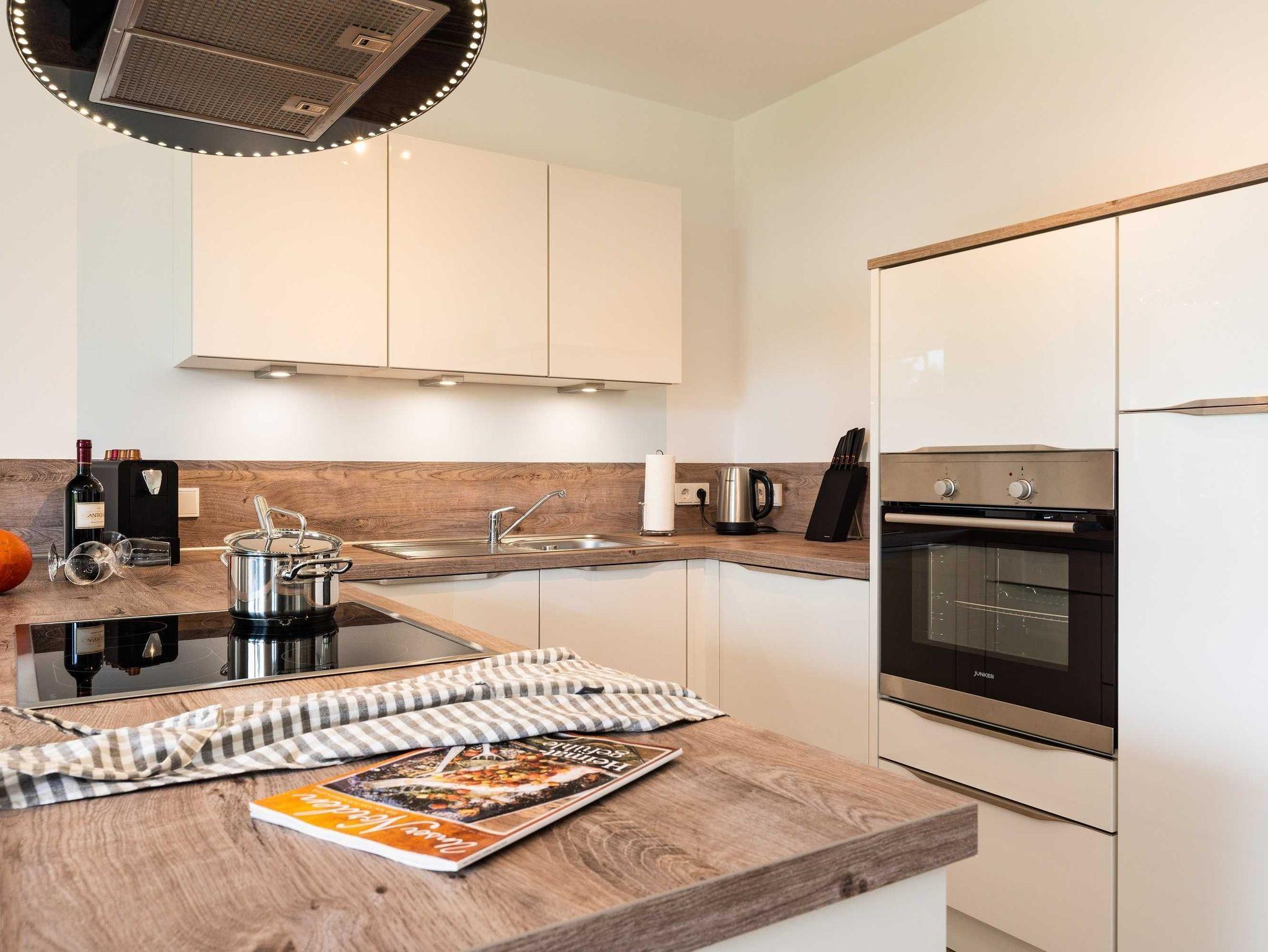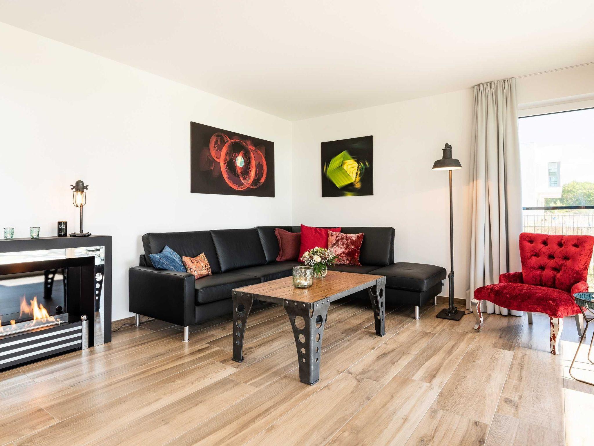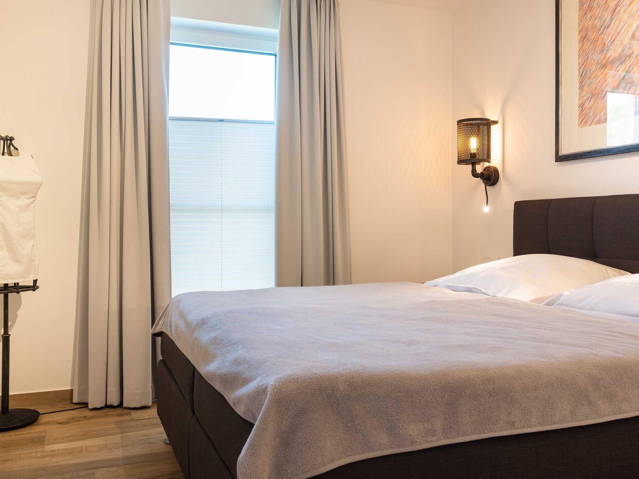 Diese luxuriöse 4-Zimmer-Wohnung im Erdgeschoss von Haus 3 mit Platz für maximal 6 Personen sowie einem Kleinkind bis 2 Jahre im Babybett verfügt über eine Wohnfläche von 119 m² und hat 3 Schlafzimmer sowie 2 voll ausgestattete Duschbäder. Die große Sonnenterrasse mit 21 m² liegt in idealer Süd-Ausrichtung. Die Wohnung ist modern eingerichtet mit offenem Wohn-Essbereich, großem Esstisch, Ledersofa sowie Smart-TV (inkl. Sky-Abo). Die hochwertig ausgestattete Küche, offen zum Wohnbereich, lässt keine Wünsche offen. Erholsamer Schlaf in den beiden Schlafzimmern mit Boxspringbetten und Smart-TV ist garantiert. Im dritten Schlafzimmer befindet sich ein bequemes Schlafsofa (Liegefläche: 1,80 x 2,00 m) und ein Smart-TV. Das Badezimmer en Suite ist mit einer begehbaren Dusche ausgestattet. Auf der großen, überdachten Sonnenterrasse mit Essgruppe und jeweils zwei Relax-Sesseln, Fußhockern, Sonnenschirm und Sonnenliegen können Sie die Seele baumeln lassen.