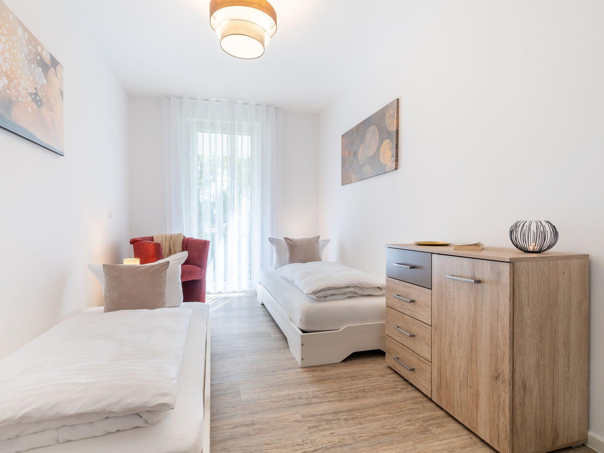 Auf einer Wohnfläche von 79 m² finden vier Erwachsene und ein Kleinkind bis zwei Jahre (im Babybett) in dieser modern eingerichteten Ferienwohnung ausreichend Platz für einen entspannten Urlaub am Stettiner Haff auf Usedom.