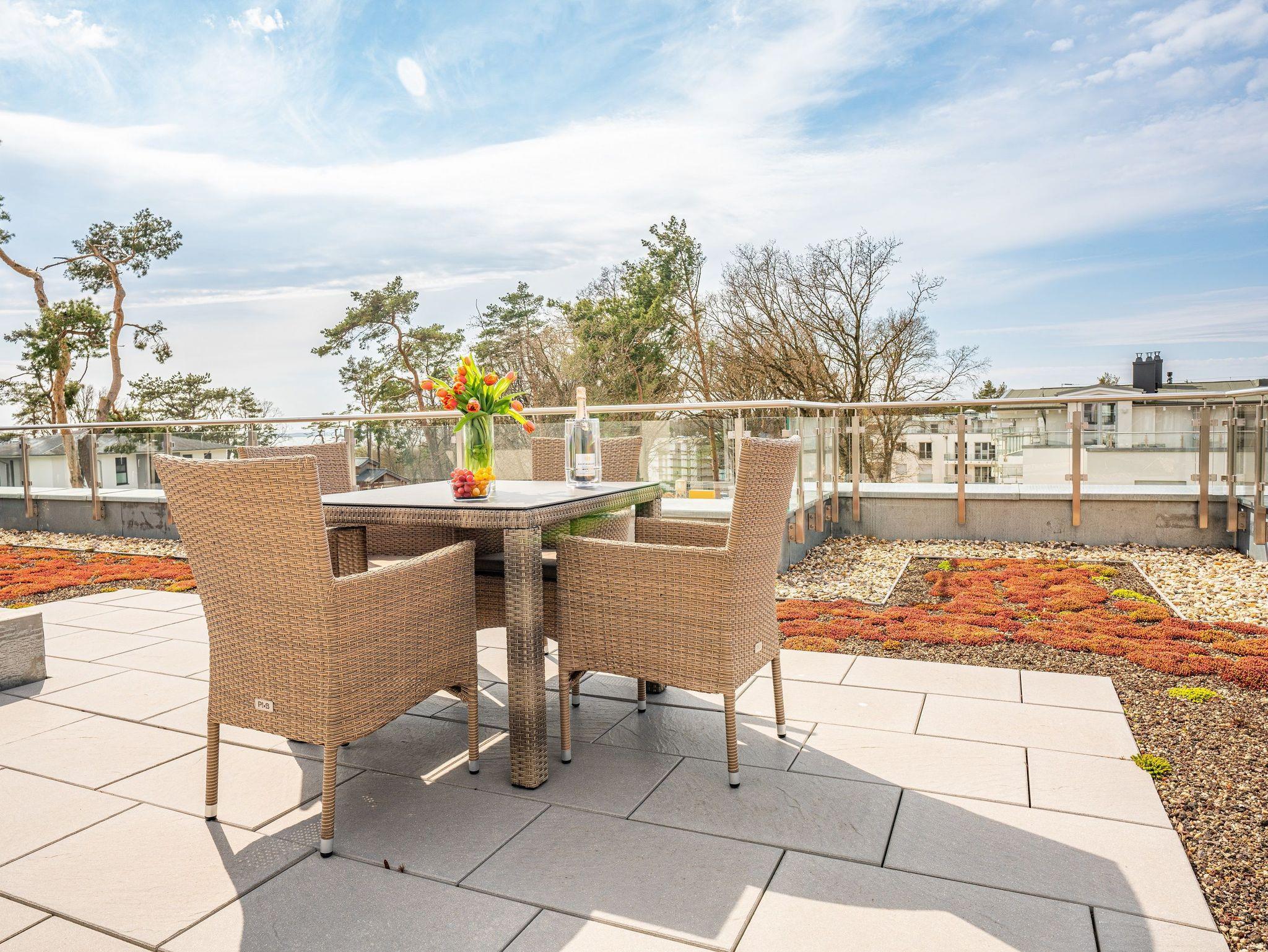 Weit ab von der Hektik und den Besuchermassen öffentlicher Wellnessangebote, finden Sie im Dachgeschoss des Hauses auf 190 m² die Ruhe, die Sie sich verdient haben. Entspannen Sie im hauseigenen, kostenfreien Wellnessbereich mit zwei Saunen und gemütlichem Ruheraum. Genießen Sie die klare Ostseeluft auf der großen angrenzenden Dachterrasse.