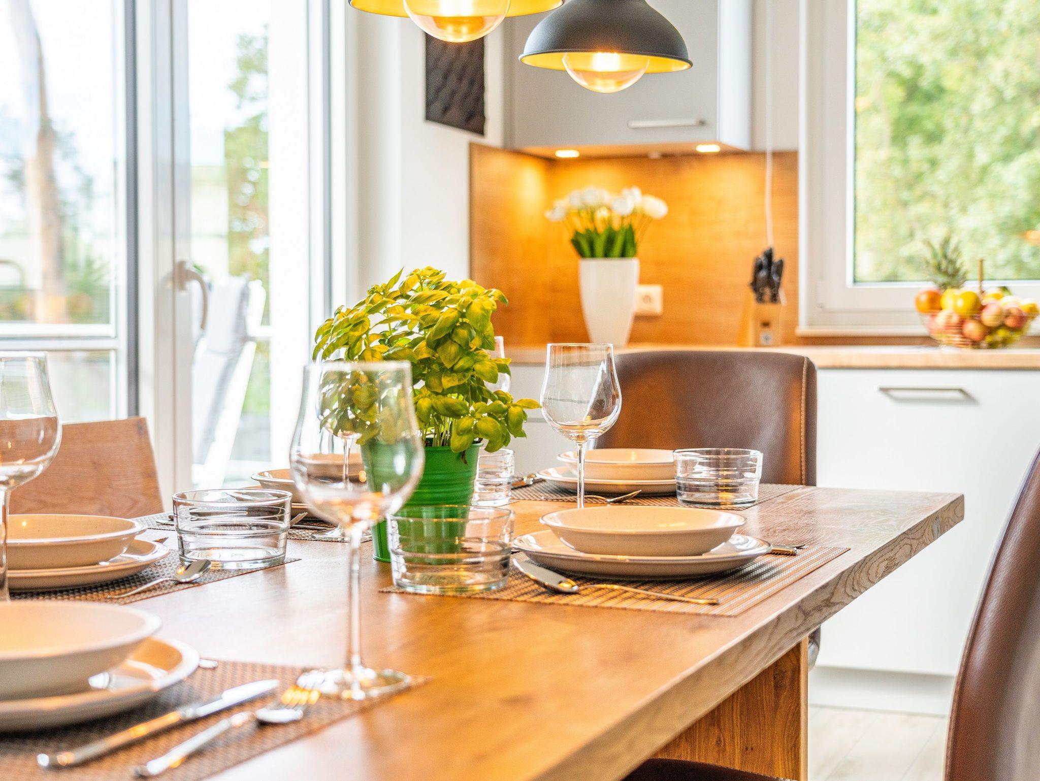 Auf einer Wohnfläche von 92 m² finden vier Erwachsene und ein Kleinkind bis zwei Jahre in dieser modern eingerichteten Ferienwohnung ausreichend Platz für einen entspannten Urlaub am Stettiner Haff auf Usedom.