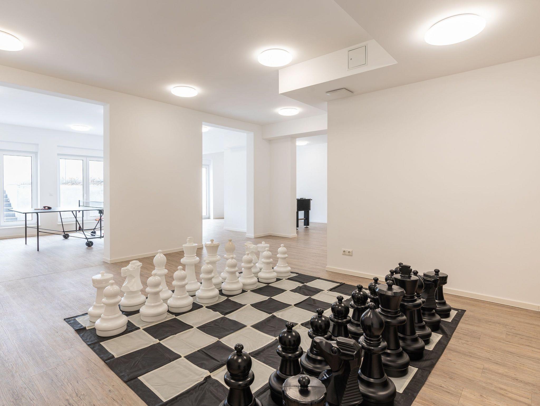 Ihre Kinder dürfen sich auf den vielseitig gestalteten Freizeitbereich (390 m²) im Souterrain mit Tischtennis, Kickertisch, Schachbrett und Spielezimmer freuen, der selbst an Schlechtwettertagen keine Langeweile aufkommen lässt. Erwachsene finden am Billardtisch oder in der gemütlichen Lounge-Ecke Ausgleich mit einem guten Buch oder Musik im Ohr.