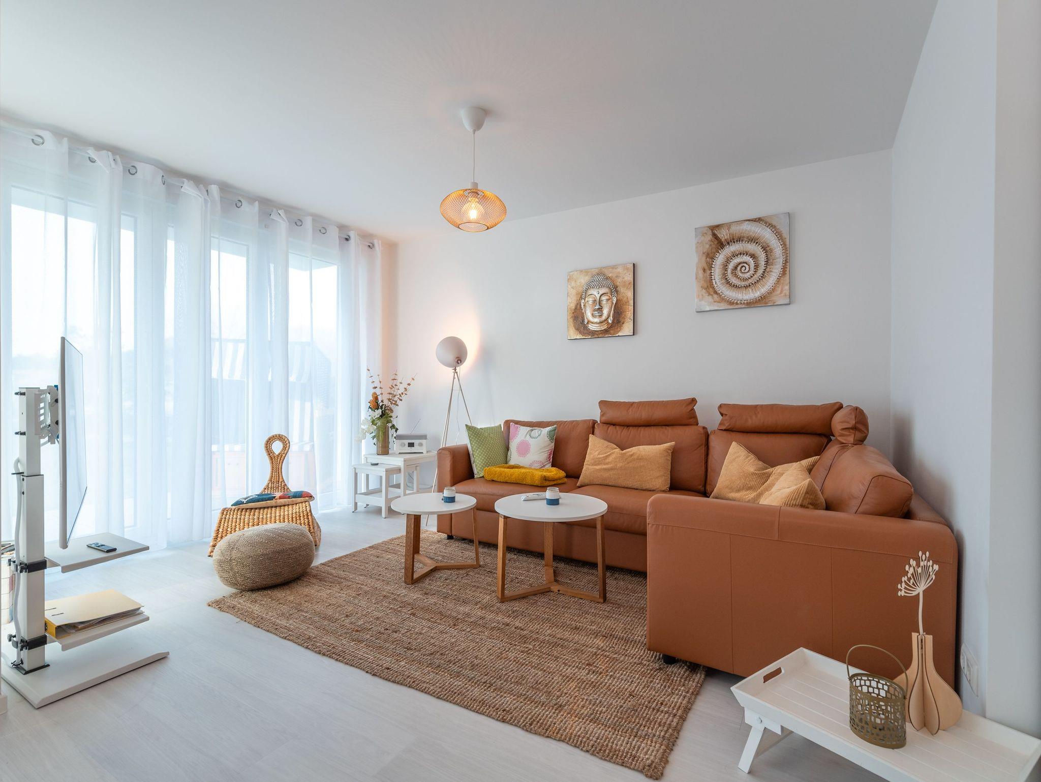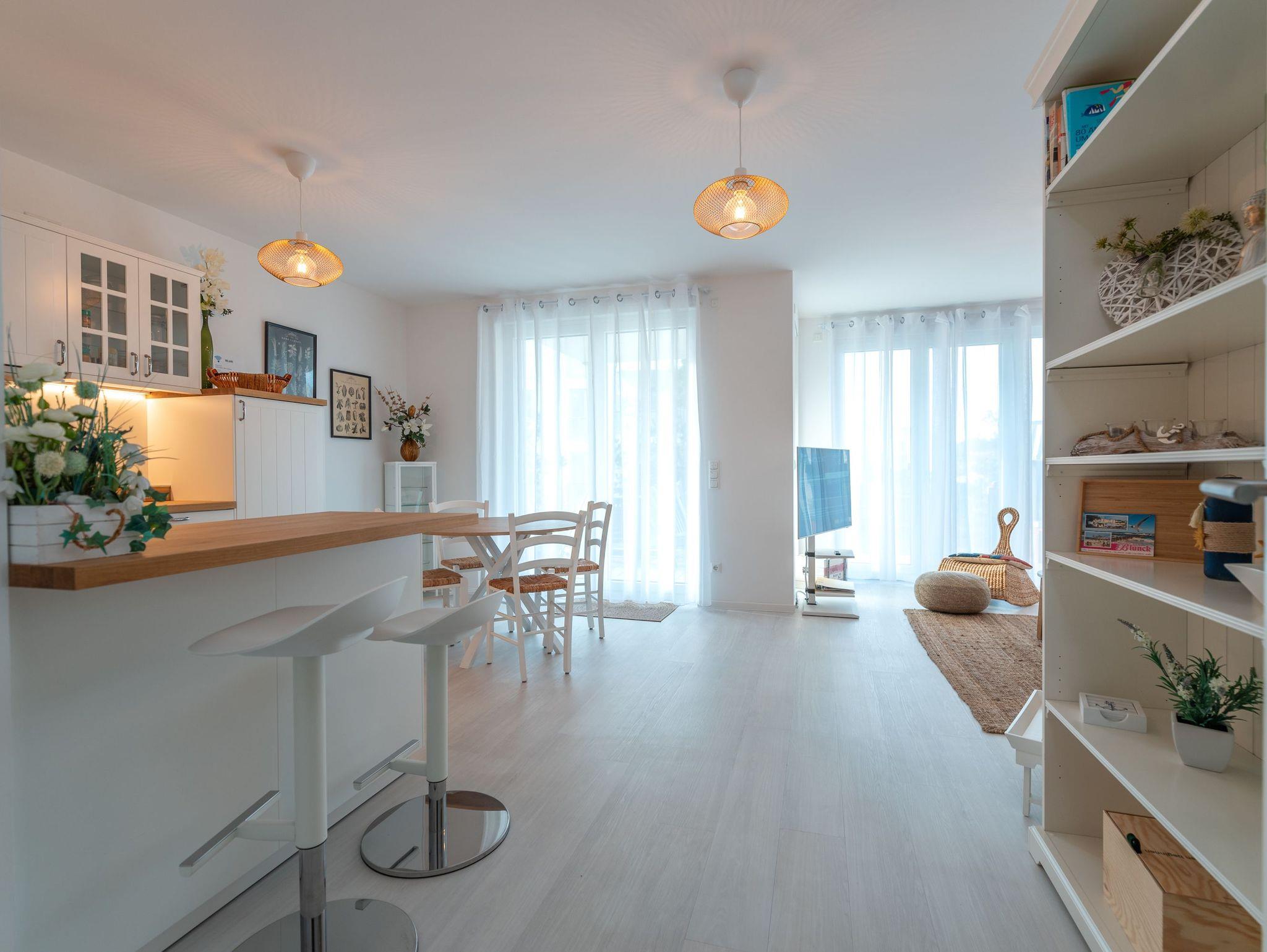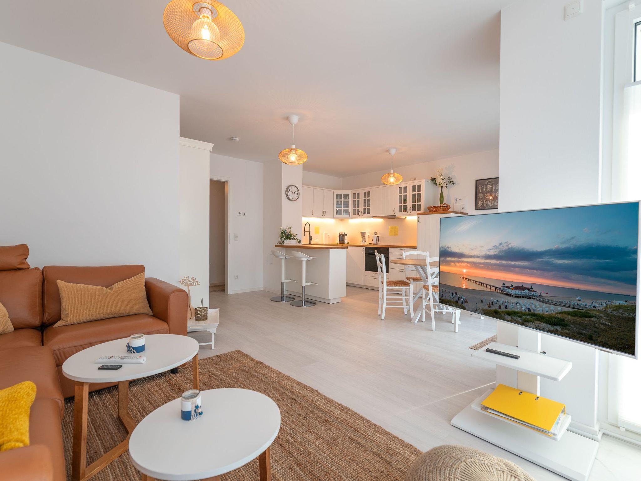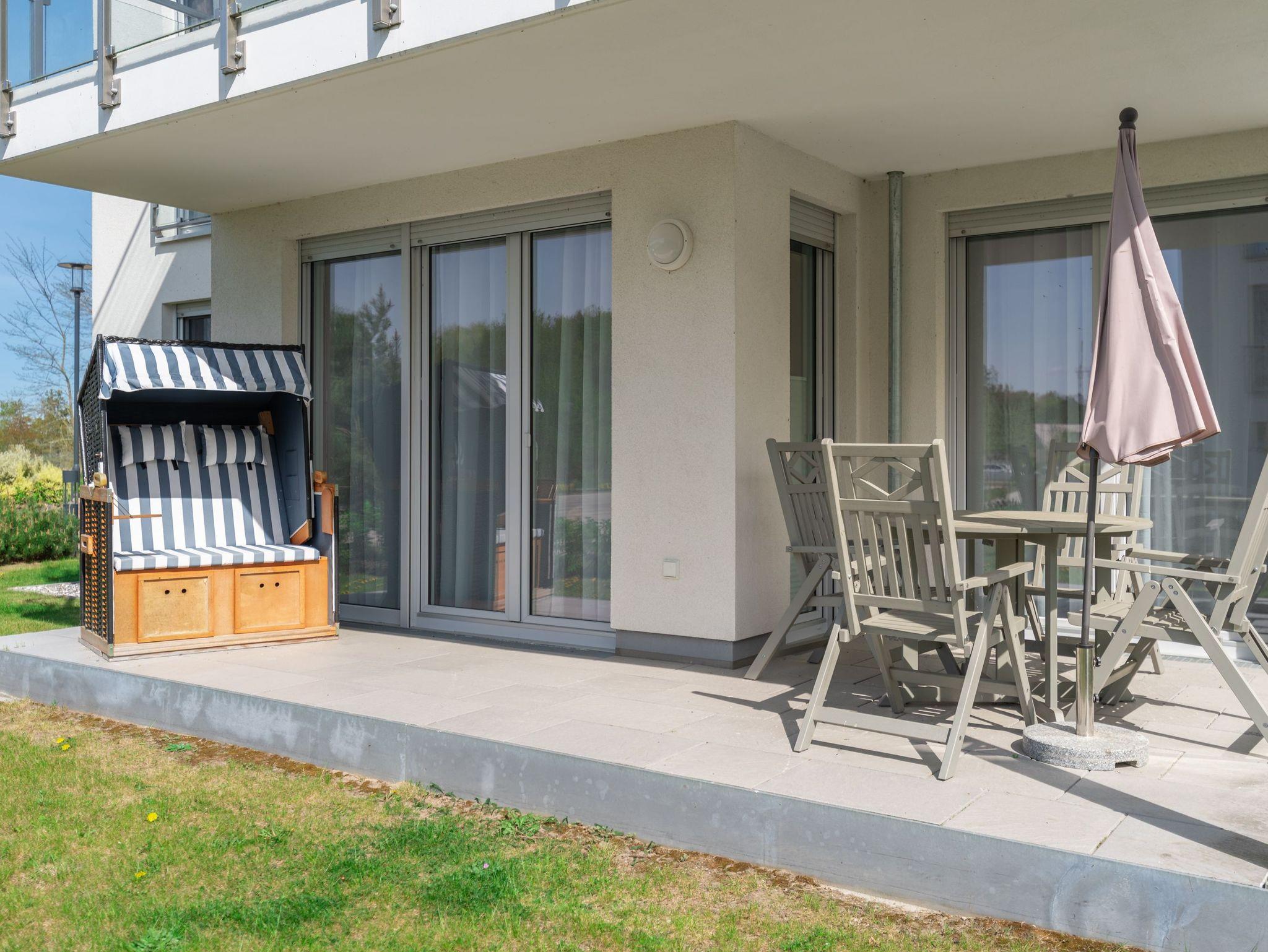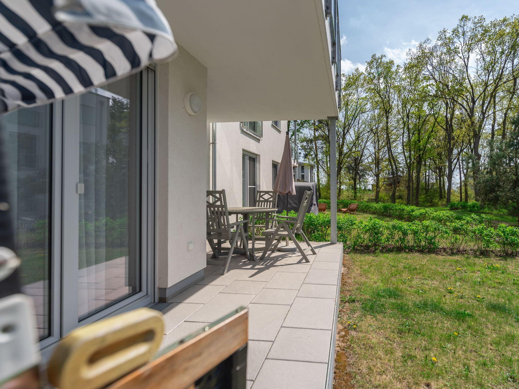 Moderne Ferienwohnung Silbermöwe auf Usedom mit Terrasse, Sauna und WLAN für erholsamen Urlaub an der Haffküste.