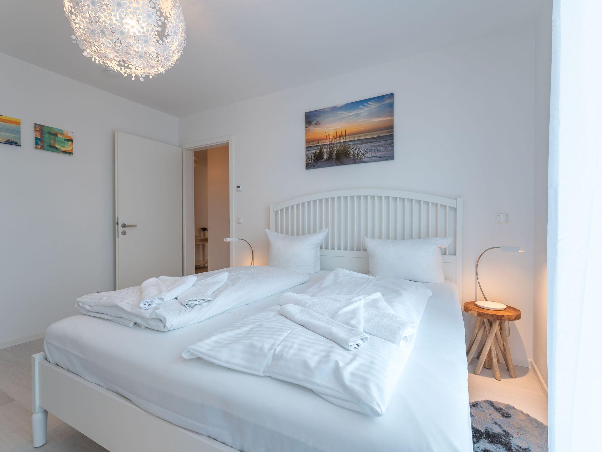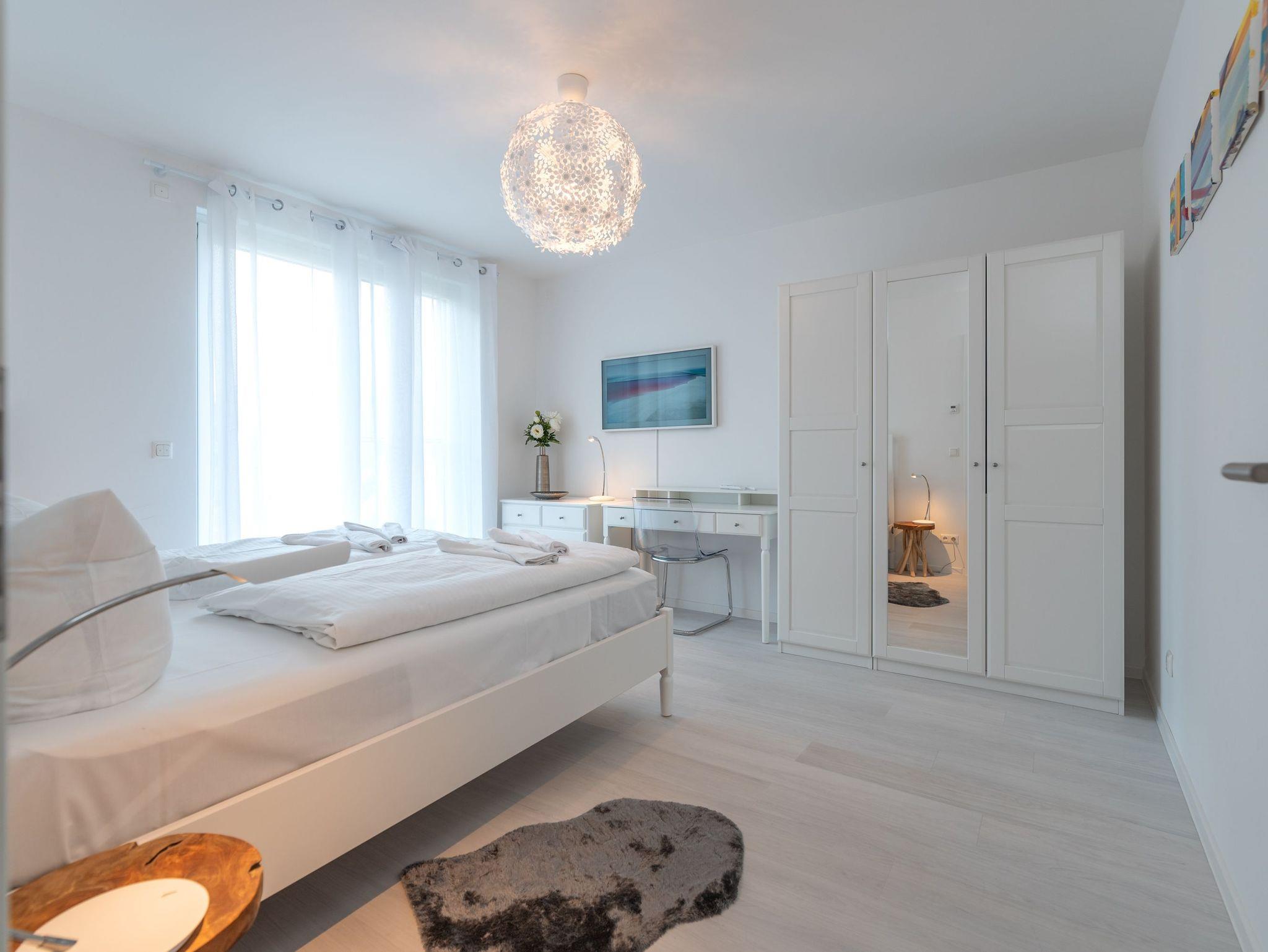 Das Schlafzimmer ist mit einem großzügigen 180 x 200 cm Doppelbett, Nachttischen, einem geräumigen Kleiderschrank und einem weiteren TV ausgestattet. Für die kleinsten Gäste stehen ein Babybett und ein Babystuhl kostenlos zur Verfügung.