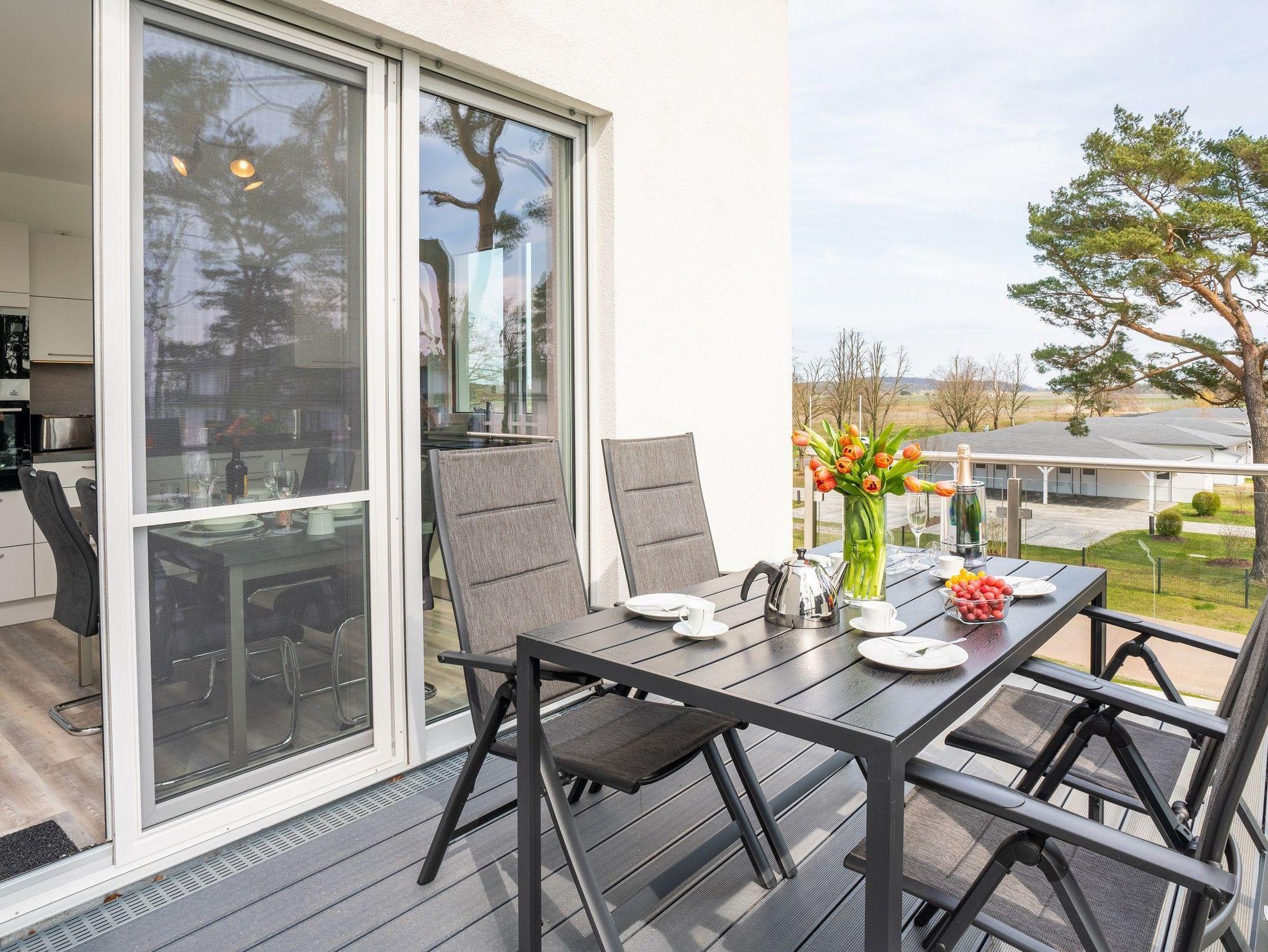 Modernes Apartment Sanddorn in ruhiger Lage nahe Naturpark Stettiner Haff auf Usedom mit Balkon und Sauna.