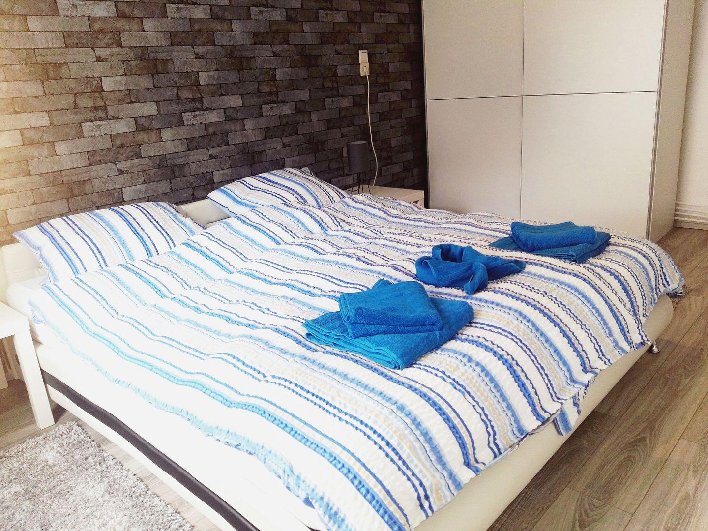 SCHLAFEN // ein Schlafzimmer mit bequemem Doppelbett, Couch mit Schlaffunktion ++