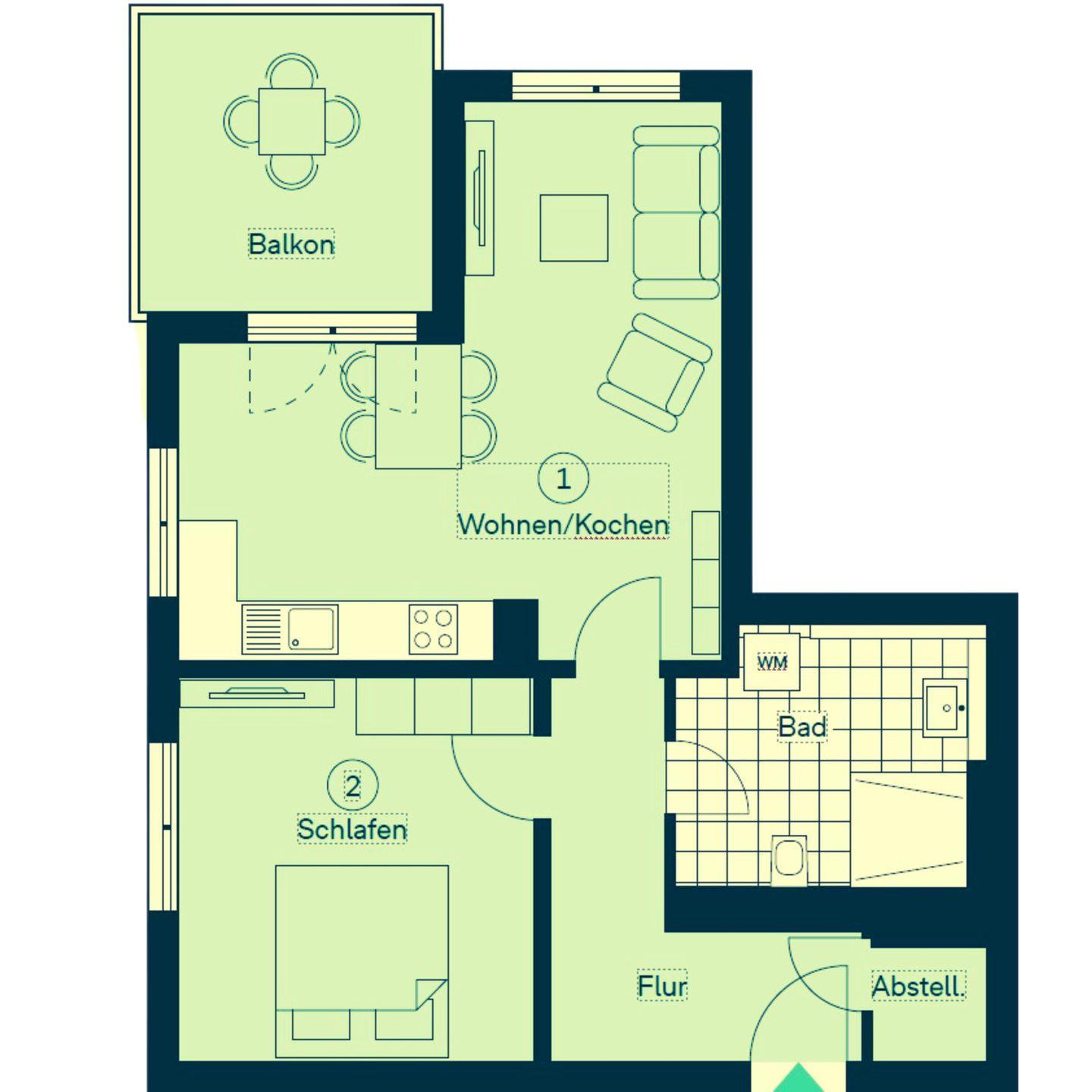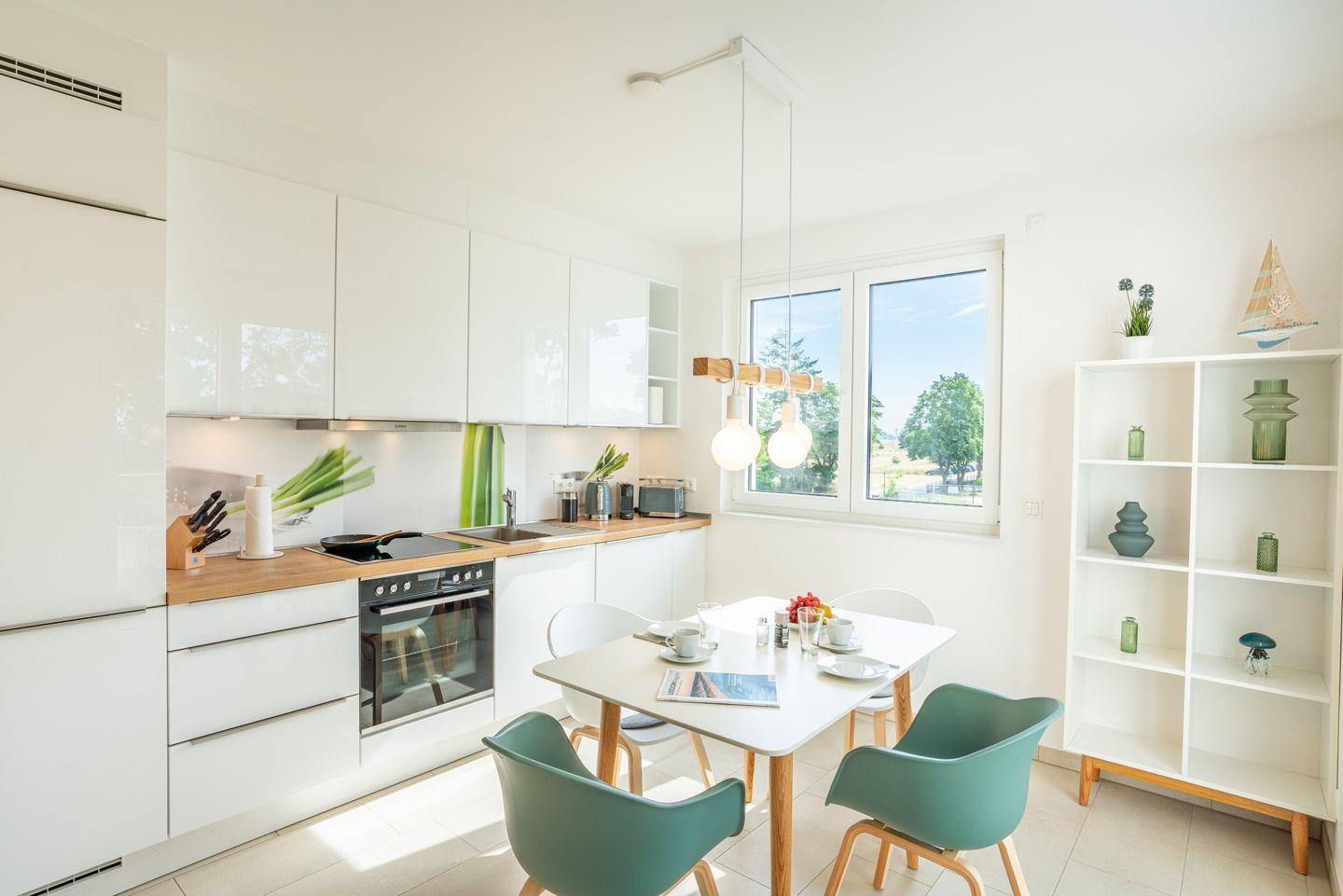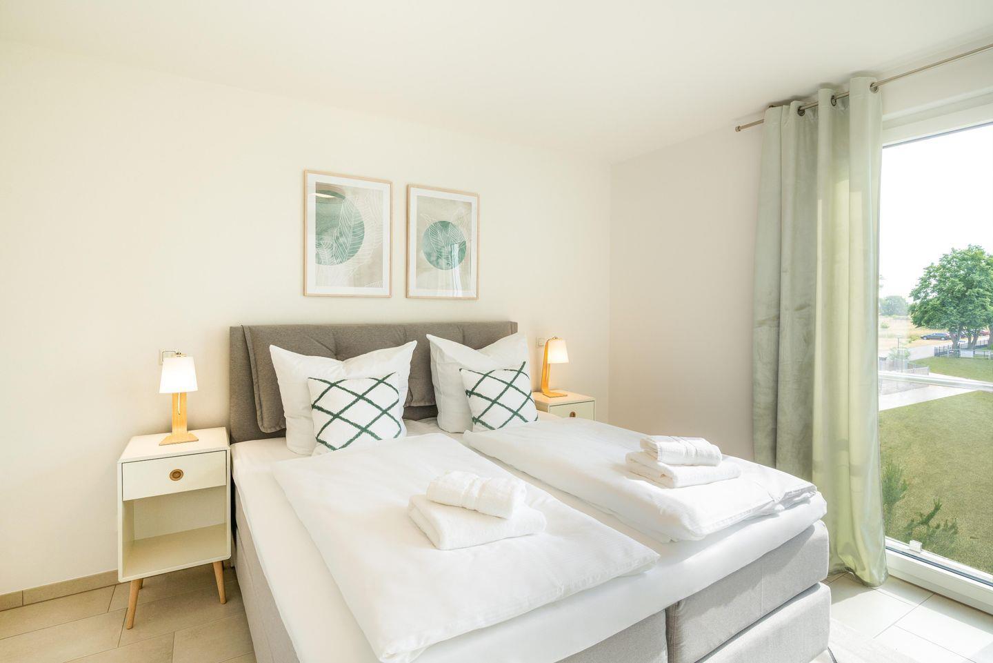 Die Ferienwohnung erstreckt sich über 61 Quadratmeter und bietet Platz für bis zu vier Gäste. Das Wohnzimmer ist ein Rückzugsort mit bequemer Sofaecke und großen Fenstern.Die voll ausgestattete Küche ermöglicht Ihnen, kulinarische Köstlichkeiten zuzubereiten, die Sie dann auf dem sonnigen Balkon genießen können.Die Schlafzimmer sind ein Ort der Ruhe und Entspannung. Das komfortable Boxspringbett verspricht erholsame Nächte. Das Badezimmer ist modern gestaltet, mit einer geräumigen Dusche.