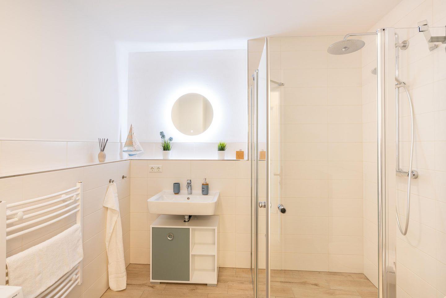Badezimmer - Modern ausgestattet mit bodengleicher Dusche bietet es maximalen Komfort.