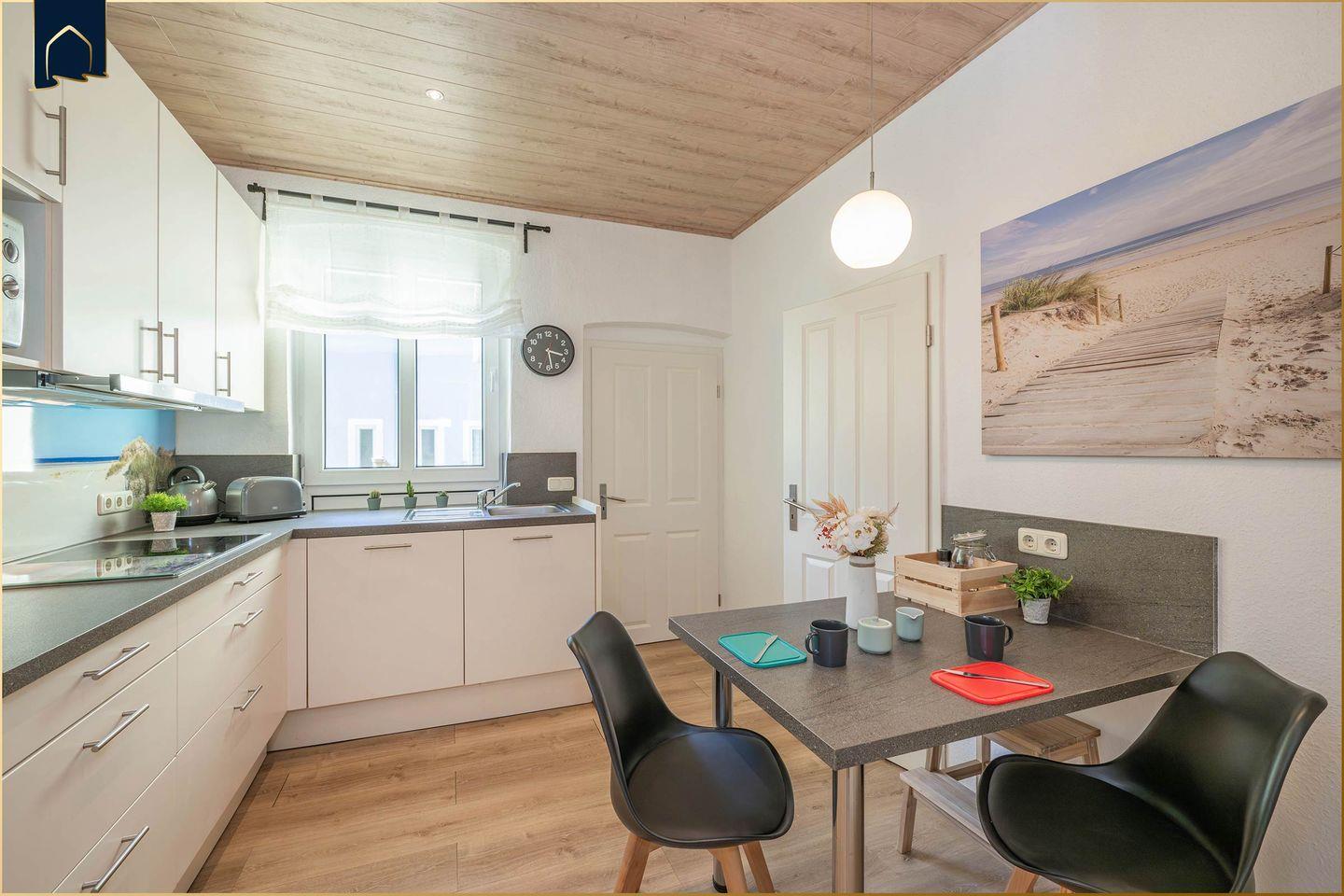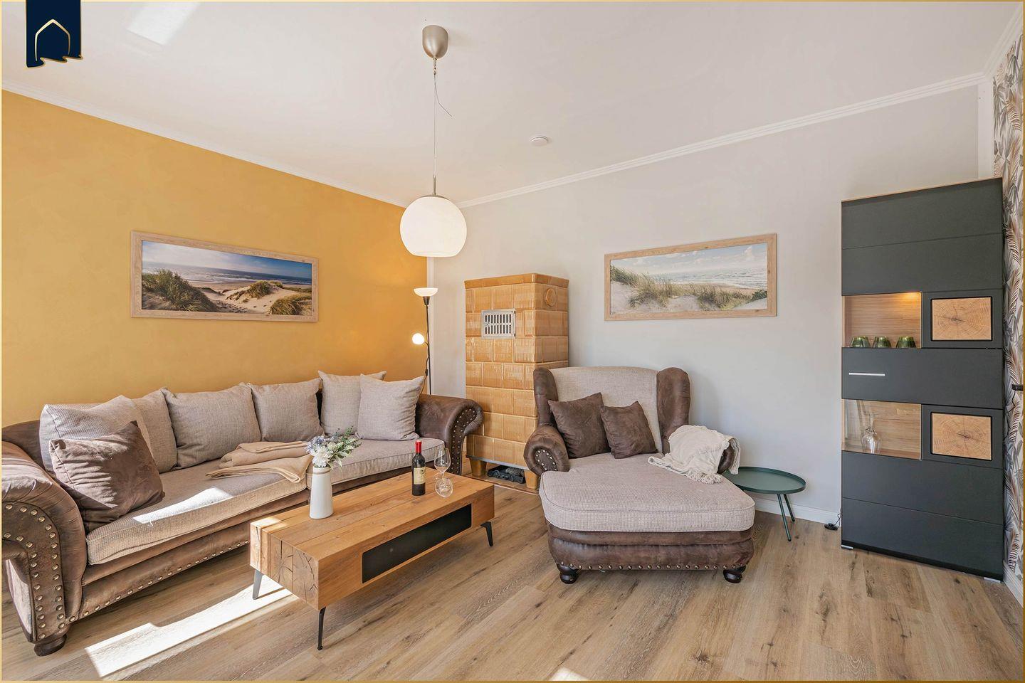 Mit drei gemütlichen Schlafzimmern, zwei modernen Bädern (darunter eine Dusche und eine Badewanne) sowie einer voll ausgestatteten Küche mit Herd, Backofen, Geschirrspüler, Mikrowelle und vielem mehr, fehlt es Ihnen an nichts. Der große Wohn- und Essbereich lädt mit Sofa, Sessel, Esstisch und TV zum Verweilen ein. Dank WLAN, Radio und internationalem TV-Programm bleiben Sie auch digital bestens verbunden.
