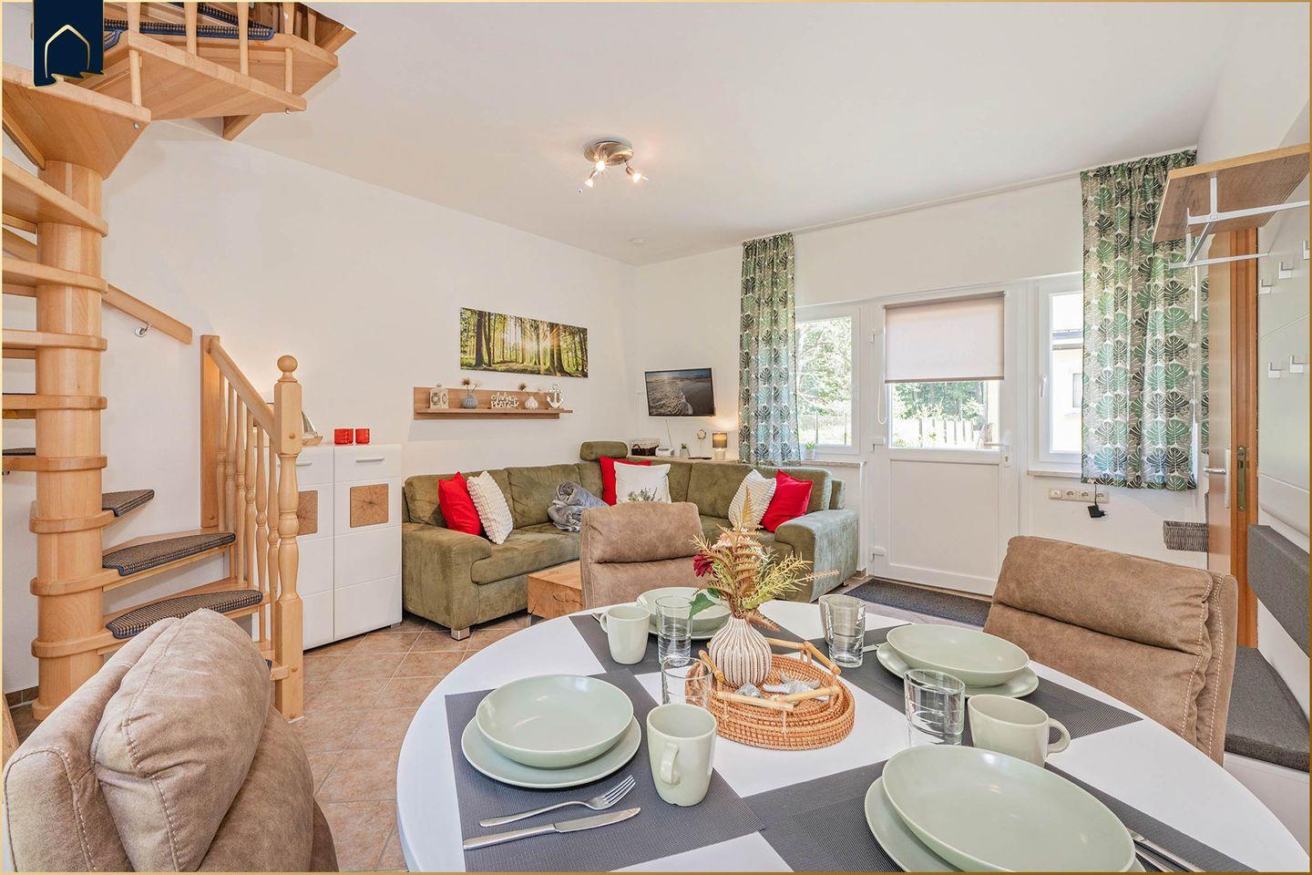 Diese charmante Ferienwohnung bietet auf 71 m² Wohnfläche Platz für bis zu vier Personen und ist ideal für Familien, Paare oder Urlaub mit Hund. Gelegen in einem abgeschlossenen Grundstück am Waldrand, genießen Gäste hier absolute Ruhe und naturnahe Erholung. Ein gepflegter Garten mit möblierter Terrasse, Liegewiese, Sonnenschirm und Grill lädt zu entspannten Stunden im Freien ein. Für Abwechslung sorgt ein Spielplatz direkt auf dem Grundstück – ideal für kleine Gäste.