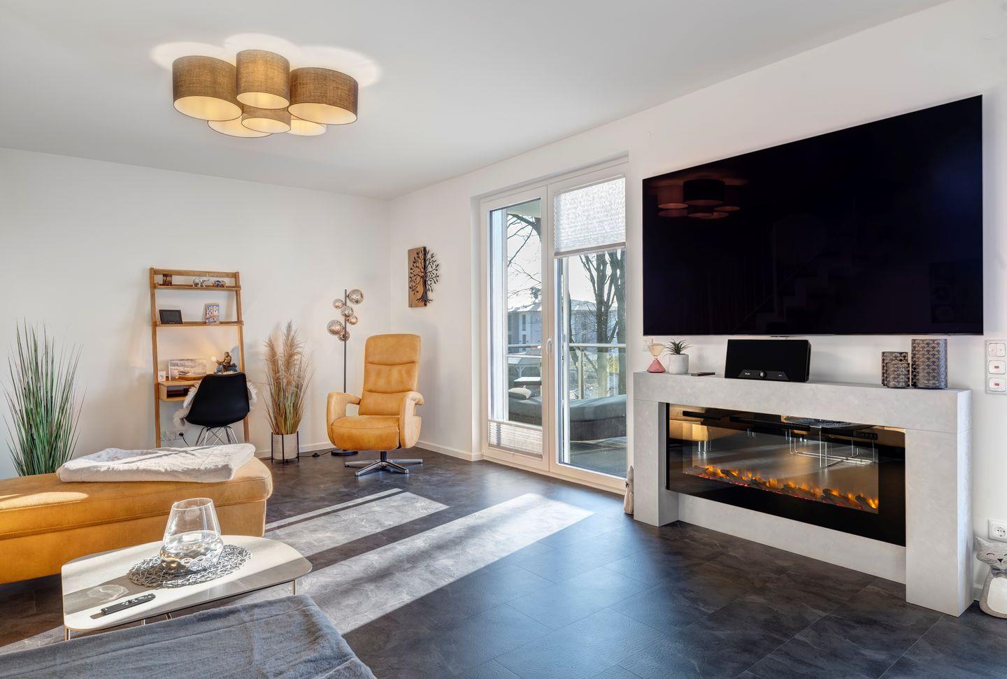 Entspannen Sie im modernen Maisonette-Apartment, das durch seine stilvolle Einrichtung und den herrlichen Haffblick begeistert. Genießen Sie gemütliche Abende vor dem Elektrokamin in der Ferienwohnung und erleben Sie einen erholsamen Aufenthalt in einer Umgebung, die Komfort und Design perfekt verbindet.