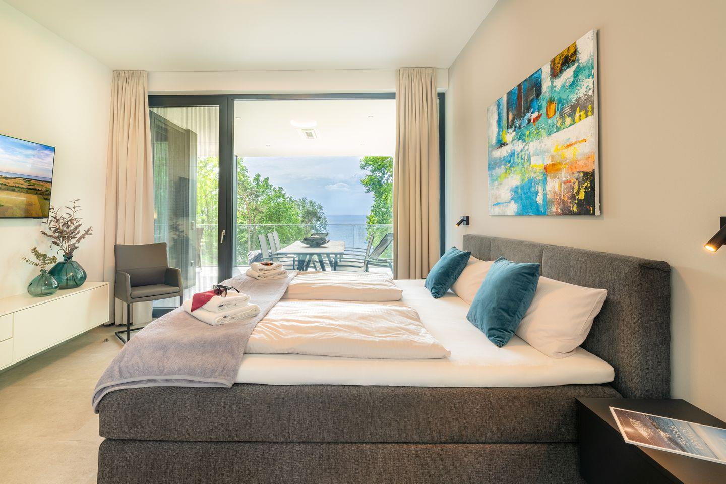 Luxuriöses Apartment "Liv" auf Usedom mit Haffblick, Wellness und modernem Design für erholsame Urlaubstage.