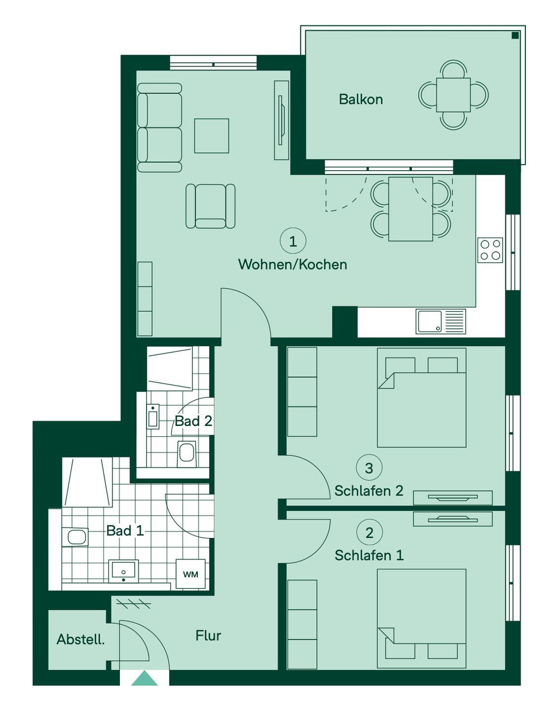 - Geräumiger Balkon mit Sitzgelegenheiten