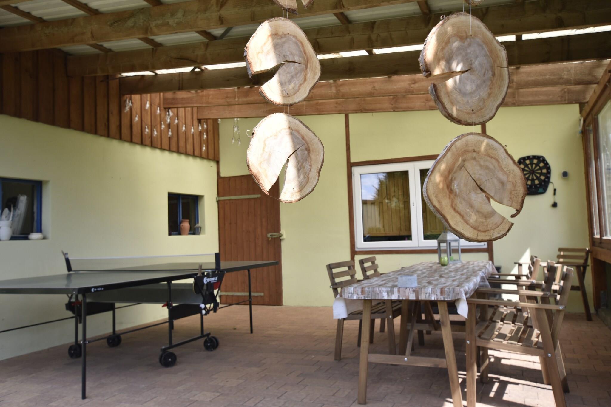 Dachgeschoss: (offene Küche(TV, Sitzecke, Radio, Wasserkocher, Toaster, Kochherd, Dunstabzugshaube, Kaffeemaschine, Spülmaschine, Kühl-/Gefrierkombination), Schlafzimmer(Doppelbett king size), Schlafzimmer(2x Einzelbett), Badezimmer(Dusche, Toilette), Flur) Garten, Gartenmöbel, Parkplatz, Trampolin