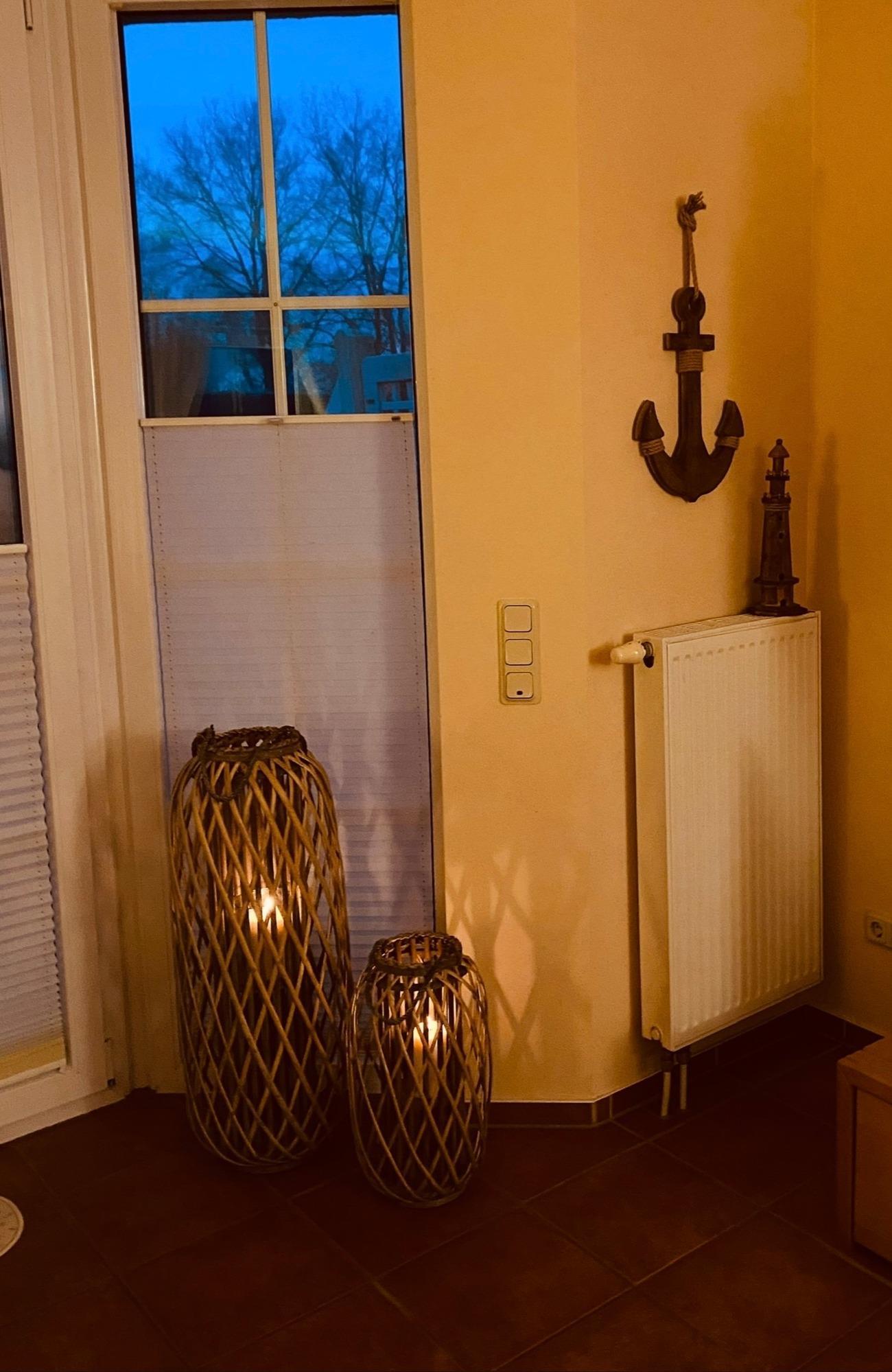 Unsere Doppelhaushälfte ist mit ca. 110 qm sehr großzügig geschnitten, modern eingerichtet und bietet im Obergeschoss mit 2 Schlafzimmern (je 1 Doppelbett) und 1 Schlafzimmer ( 1 Etagenbett) Platz für 6 Personen. Zusätzlich bieten wir 1 Kinderbett an. Die hauseigene Sauna (gegen Gebühr) und die idyllische, ruhige Lage lädt zum Relaxen und Entspannen ein.
