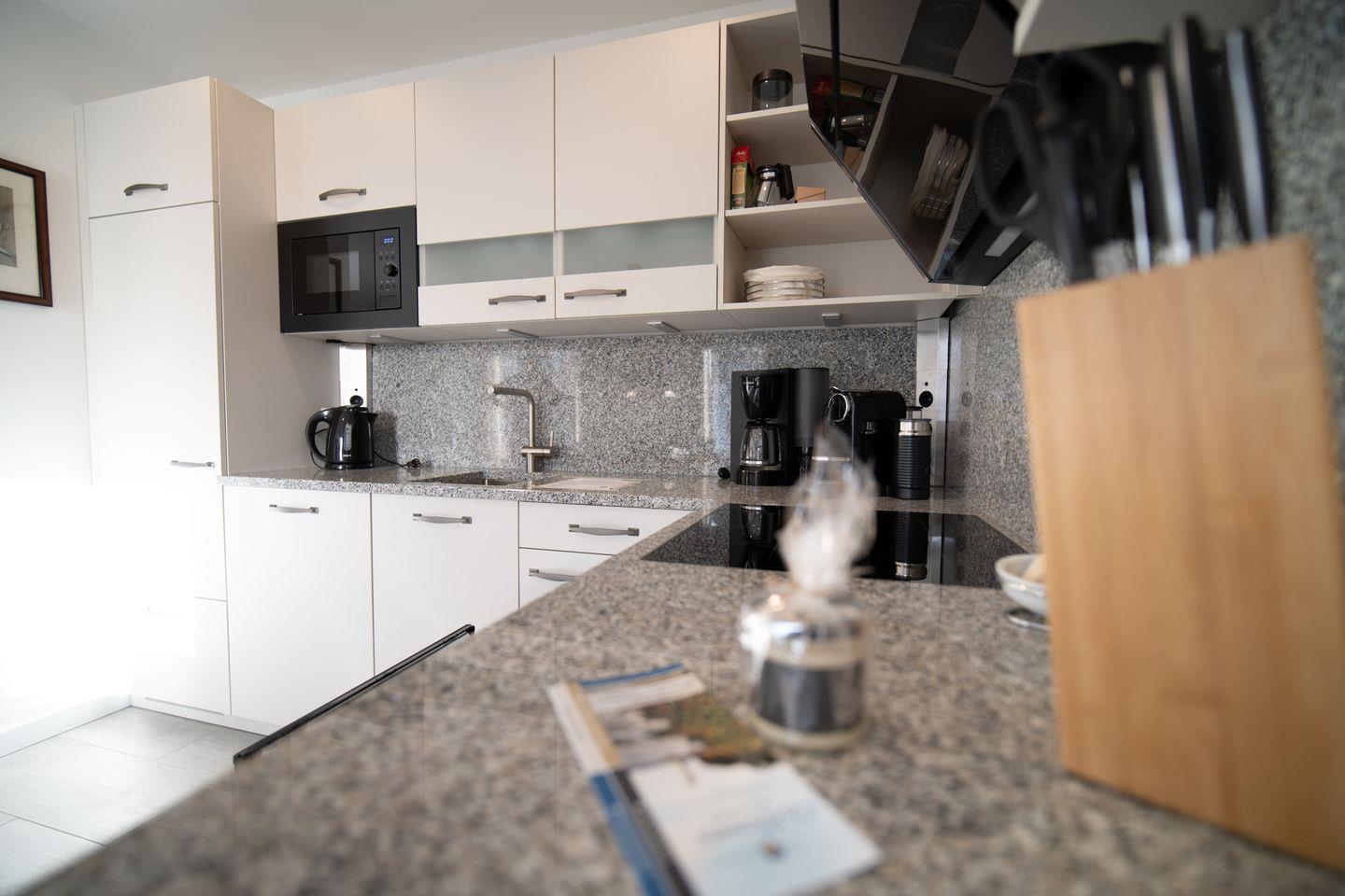 Schon beim Betreten werden Sie von einem hellen, freundlichen Eingangsbereich empfangen. Von hier geht es in den großzügigen Wohn- und Essbereich mit offener Küche. Große Fensterflächen bringen viel Licht ins Haus, während der Kaminofen eine warme, gemütliche Atmosphäre schafft – perfekt für lange Abende nach Ausflügen auf der Insel.