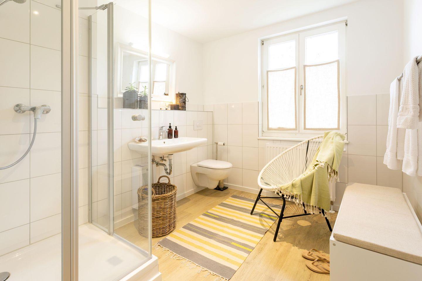 Zusätzlich bietet das Sofa die Möglichkeit einer Aufbettung. Das liebevoll gestaltete Schlafzimmer mit Leseecke und das große Duschbad sind nach Norden ausgerichtet.
