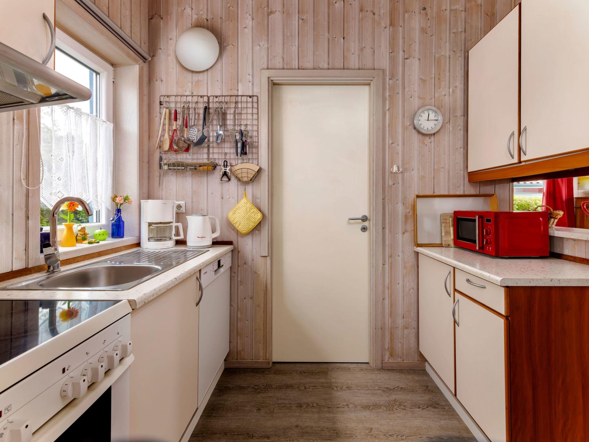 Küche: EL-Herd, großer Kühlschrank mit extra Gefrierfach, Abzugshaube, Kaffeemaschine, Spülmaschine, Toaster usw. Bad: WC, Waschbecken, K + W, Duschkabine, Fußbodenheizung Bad, Sauna Installationsraum: Waschmaschine, Staubsauger Außenbereich: Terrasse (z. T. überdacht), Grill, Gartenmöbel, Liegewiese, Parkplatz vor der Haustür. Fahrradschuppen Grundstück: 386 m2, eingefasst mit Hecken und Zaun. Haustiere: 1
