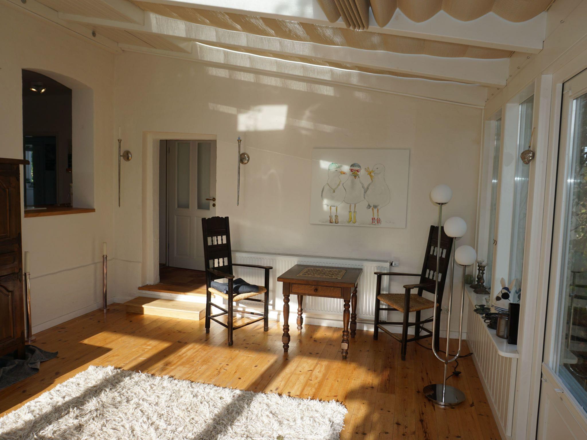 Im Inneren des Hauses erwarten Sie eine wundervoll ausgestattete Wohnküche, ein gemütliches Wohnzimmer mit Kamin und Smart TV für entspannte Abende, ein Speisezimmer mit Klavier und ausladendem Esstisch sowie drei einladende Schlafzimmer, wobei eines ebenfalls über einen Smart TV verfügt. Des Weiteren stehen Ihnen 3 WCs und 2 ebenerdige Duschen, ein Saunazimmer für Entspannungsmomente und der wintergartenähnliche Anbau zur Verfügung, der mit seinem panoramischen Blick über die Landschaft zum Verweilen einlädt.