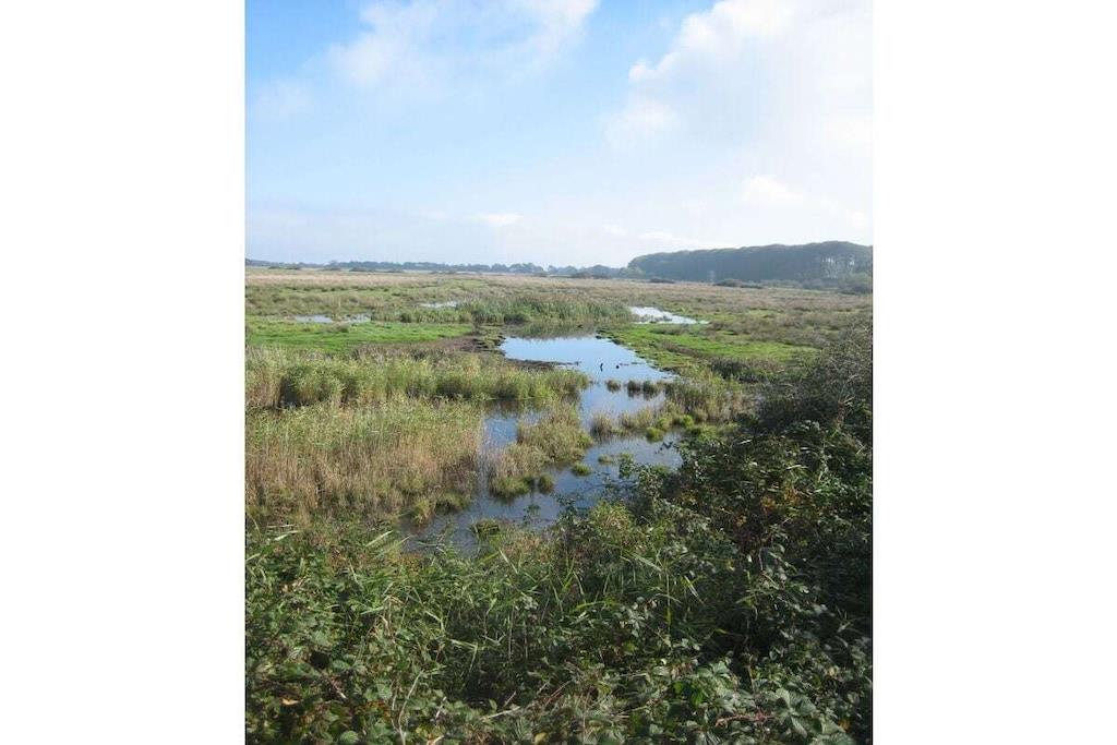 Die Ferienwohnung liegt auf einem ca. 4800 m² großen Grundstück, wovon gut 2500m² als Spielwiese abgetrennt sind. Wohnung 1 (55 m²) liegt im Obergeschoß des Haupthauses und hat bis zu 5 Schlafplätze. Wohnschlafraum mit einem hochwertigen Schrankdoppelbett von Nele. Im Schlafraum ein Doppelbett (darüber über eine schräge Trepper Zusatzbett). eine ca. 23m² große Dachterrasse, die nicht einsehbar ist und den ganzen Tag Sonne hat (natürlich nur, wenn die Sonne scheint ) Moderne Einbauküche (Heißluftherd mit Ceranfeld, Wasserkocher, Kaffeemaschine, Geschirrspüler, Mikrowelle, Toaster und Kühlschrank mit 3 Sterne Gefrierfach).