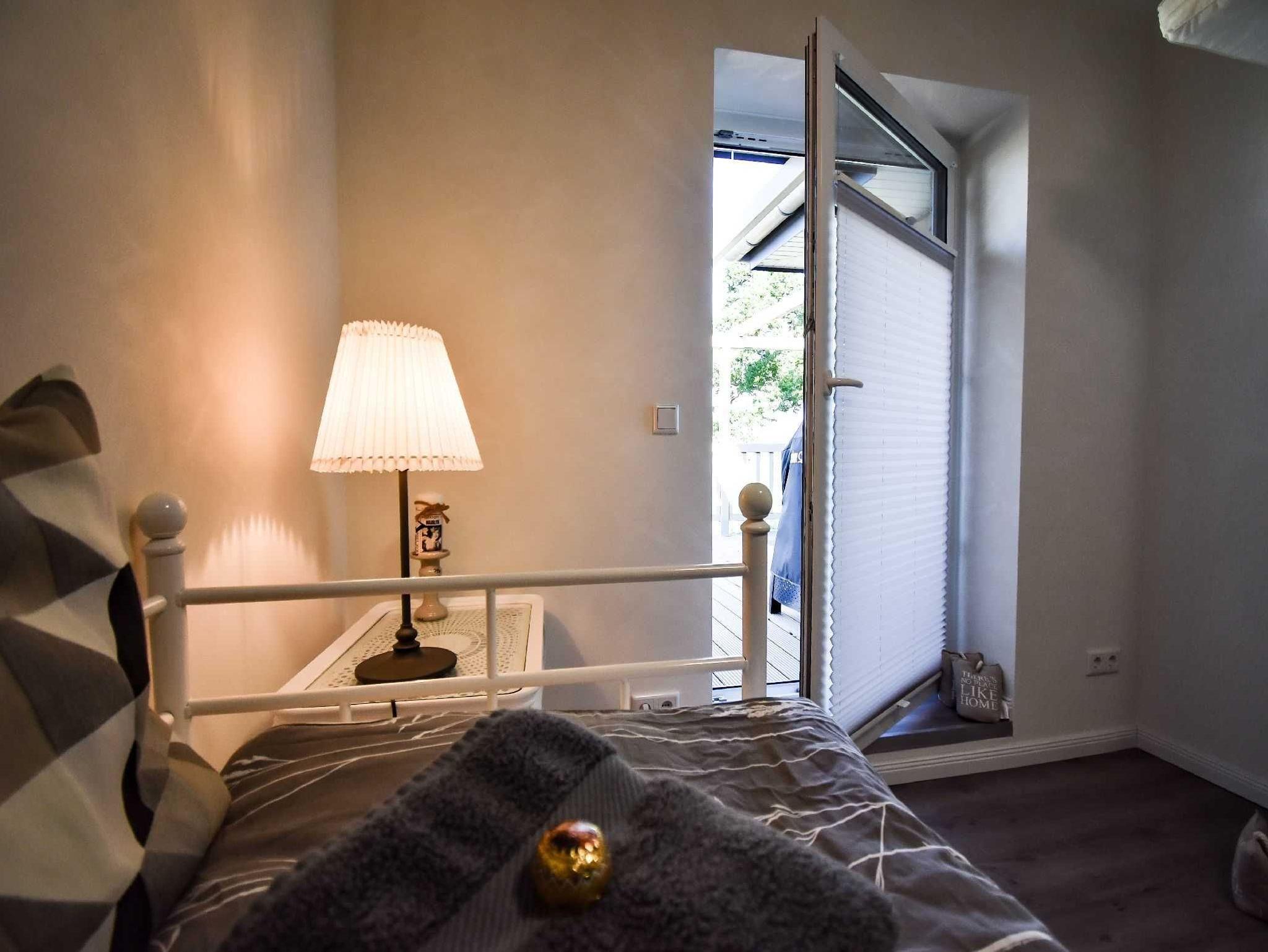 - Schlafzimmer mit Einzelbett und TV; Terrasse anliegend; Bettwäsche ist zu buchbar