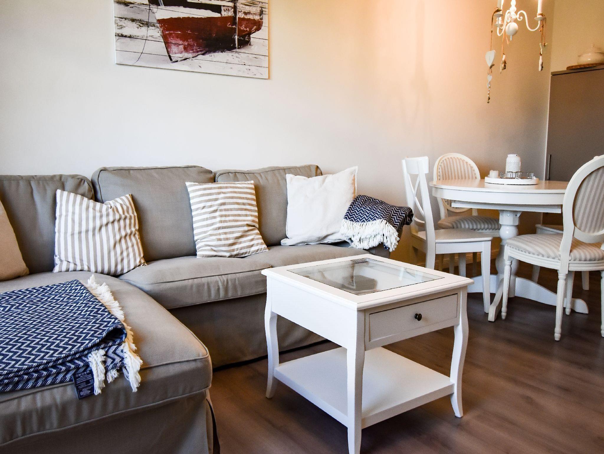 Maritim moderne Ferienwohnung zentral gelegen mit Meerblick, Terrasse mit Strandkorb und viel Wohlfühlambiente in unmittelbarer Ostseenähe.