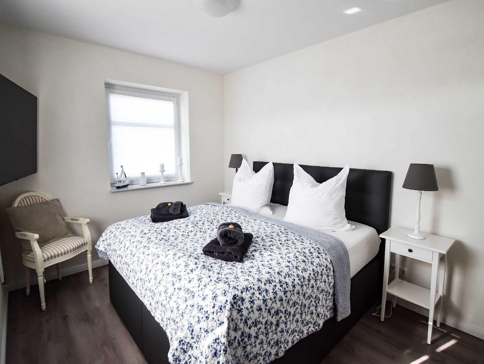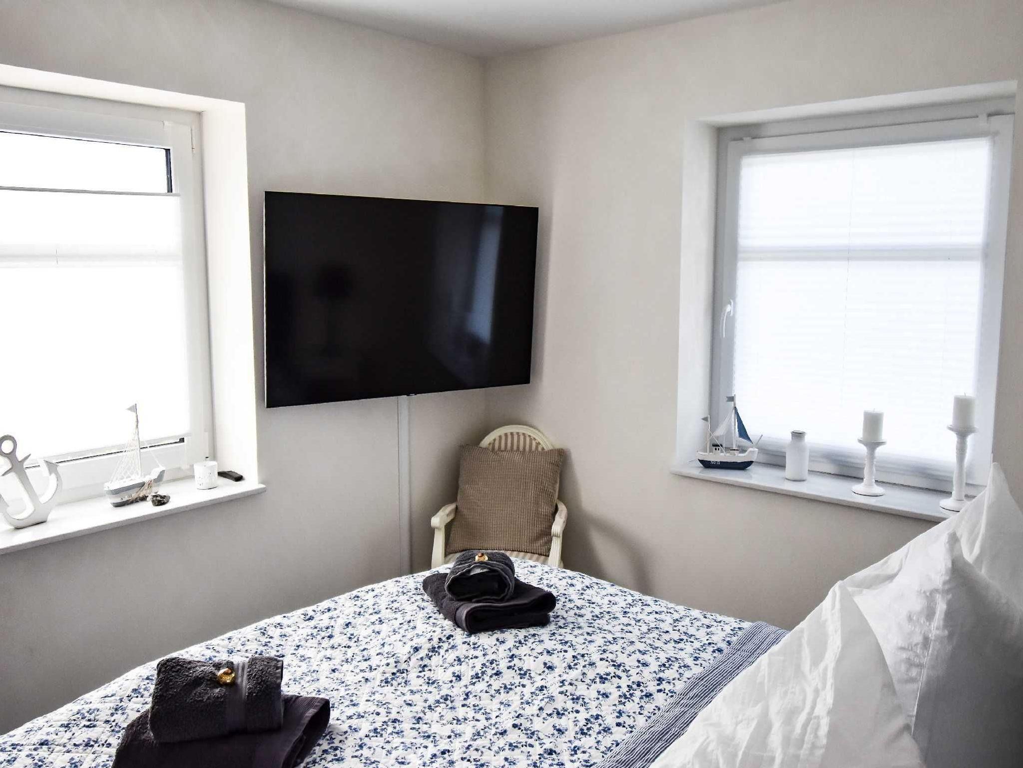 - Schlafzimmer mit Doppelbett und TV; Bettwäsche ist zu buchbar