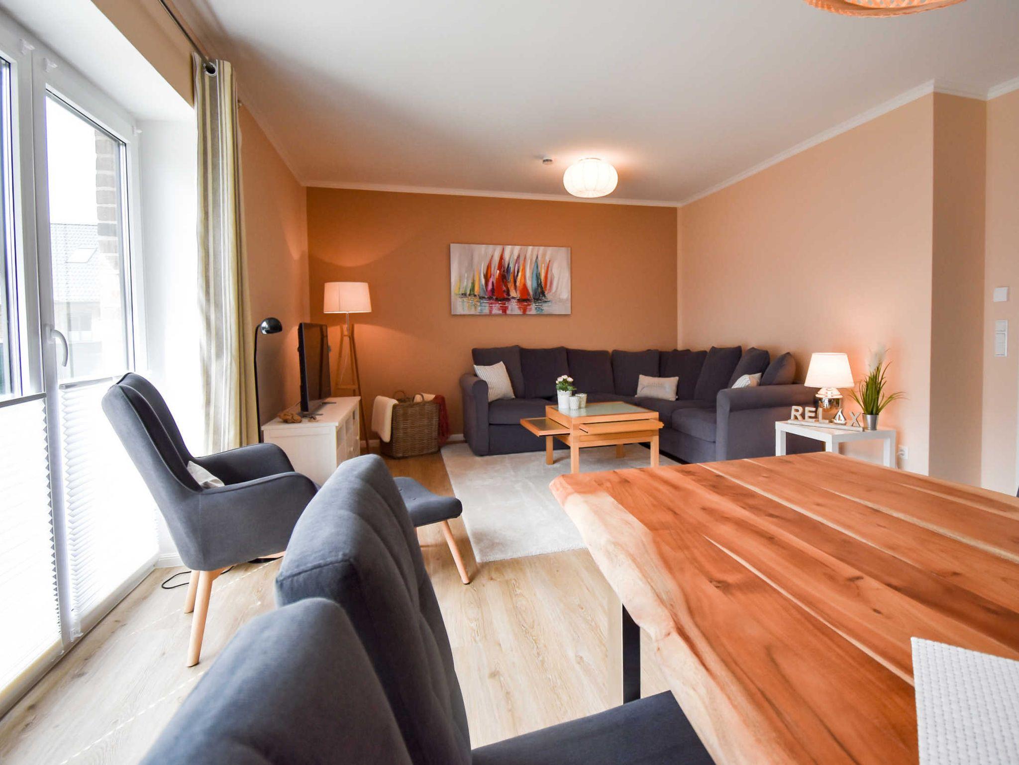 Mit maritimem Ambiente in sanften Naturtönen gestaltet bietet die ebenerdige Doppelhaushälfte Tim's Huus Strandbrise bis zu 4 Personen viel Urlaubskomfort.