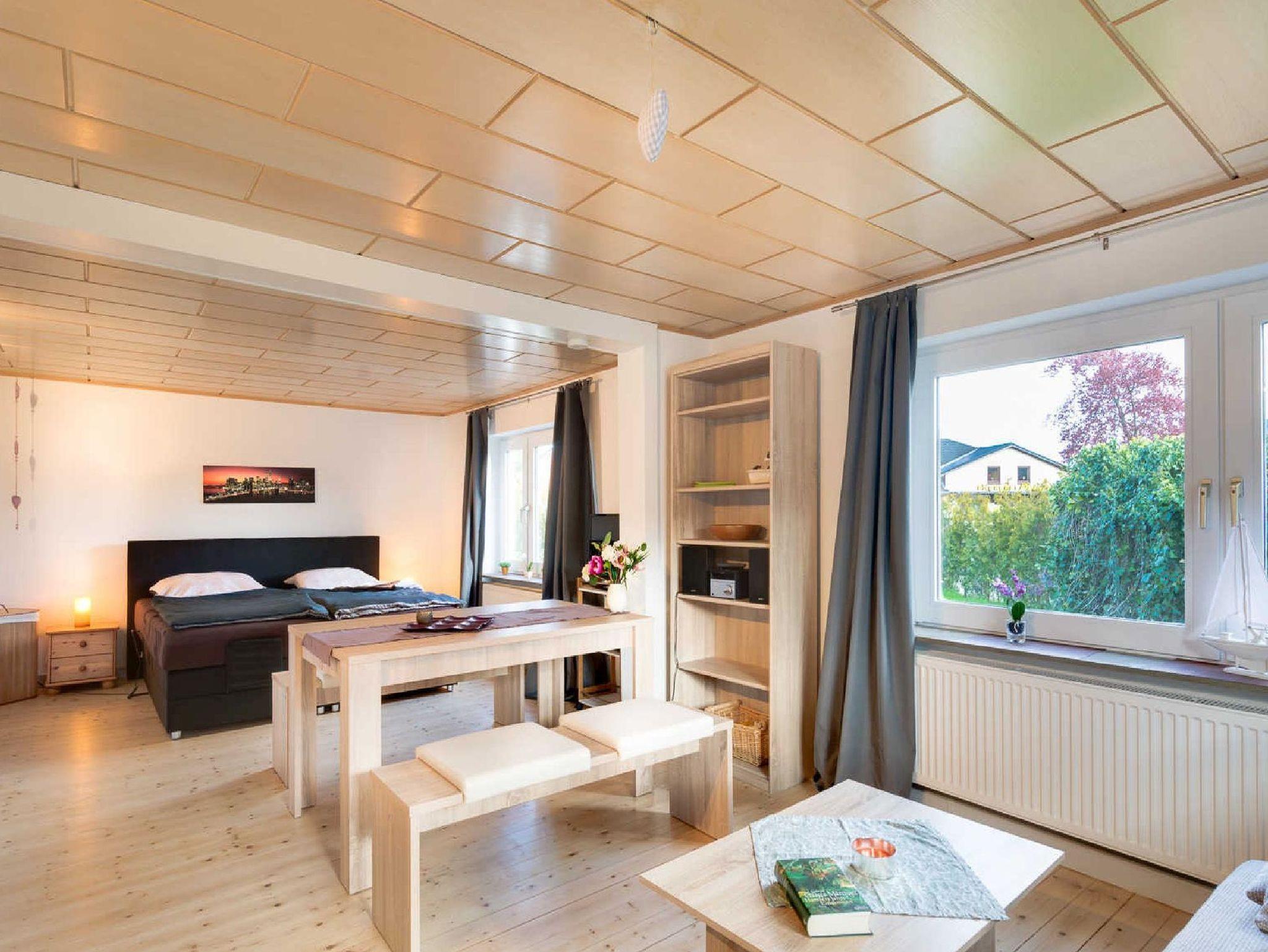 - Wohn- Schlaf- und Essraum mit Boxspringbett (2x90x200), Schlafsofa und Essplatz